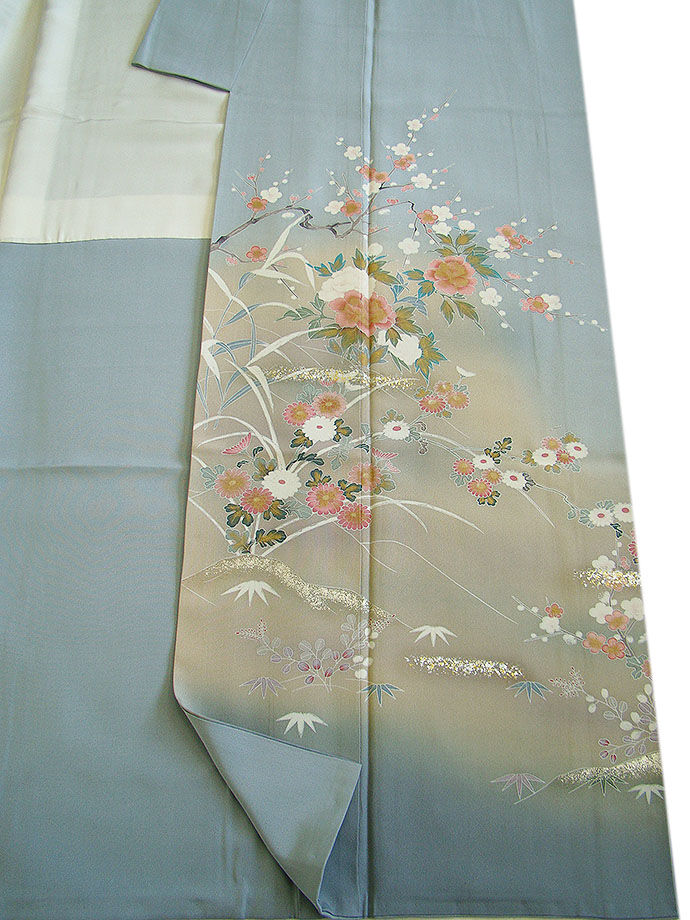 ※慶事の席にも美しく愛でフォーマルな一時を限りなく優美に演出する お顔映りも美しく演出する色彩の気品に満ちた楚々とした美しい附下げ・訪問着です。 帯や小物次第で自分らしい様々な表情をお愉しみ頂け、どんなお客様にも好感度大の 長く着られる一枚を大切に纏う醍醐味をご堪能下さいませ。 パーティ、慶事の宴、冠婚祭、結婚披露宴、お茶会、社交着等々。 30代~60代迄幅広く着用出来ます。身長157cm~163cmの貴女に最適です。 |