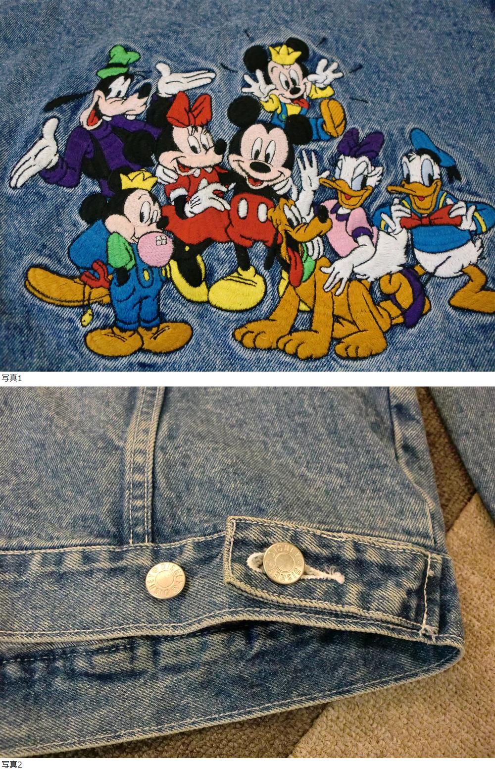90s00s ディズニー バック刺繍 デニムジャケット L ヴィンテージ オールド Disney Mickey ジージャン ミッキーマウス ミニー ドナルド 收藏