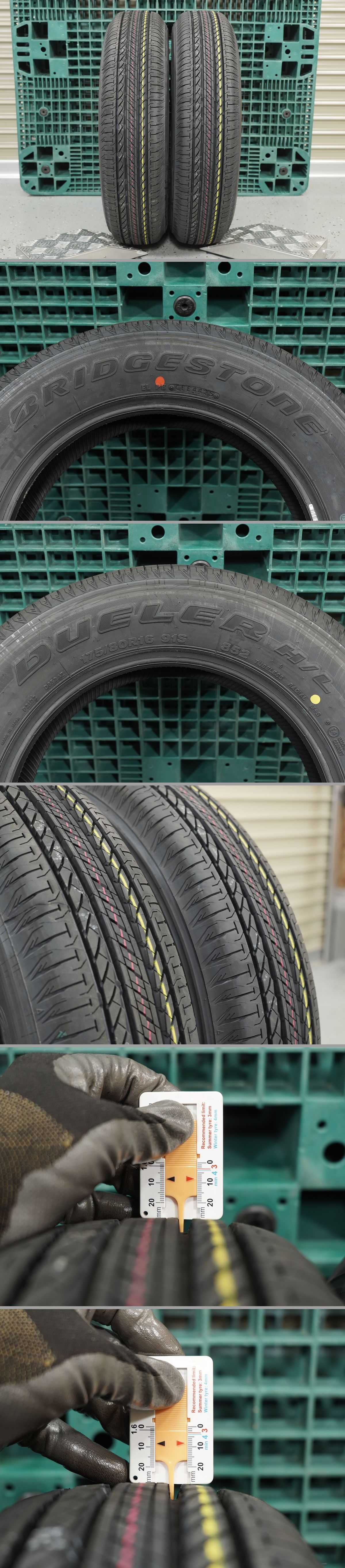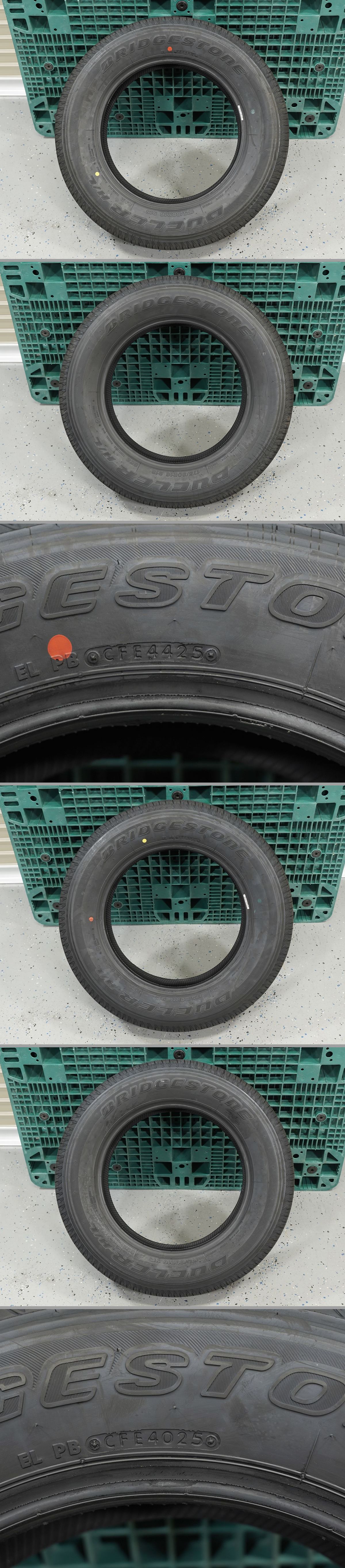【商 品】 ブリヂストン デューラー H/L852 175/80R16 96S 残り溝:約8mm 製造年週:2025年40週製造×1本 2025年44週製造×1本 【商品状態】 ◎2本共にJB64W型ジムニー(一部改良後)納車前外しの 背面スペア2台分よりバラした物です!! ◎納車前外しのスペアですので走行歴は一切無しの未使用品!! ◎成型跡・識線が残る極上未使用品!! ◎ホイールより取り外すまでエア漏れ無く使用されていた物!! ◎ビードの切れや傷、パンク修理やセパレーション等の形跡や ダメージとなる様な傷など無く良好!! ※保管時に付いた微細なスレ傷や汚れ有り。 ※年式が2本共に異なります。 ◎未使用!!納車前外し!!スペア取外し2本セット!! ◎成型跡・識線がトレッド面にキチンと残っております!! ◎年式は異なりますが程度はバッチリ!! 2025年製後半の新しいタイヤ!! ◎新品タイヤやアウトレット新品・未使用品を買うよりも断然お得!! ◎未使用納車前外しスペアタイヤでお得にタイヤ交換を!! ◎実は新品がとっても高価な純正タイヤ!! ◎車種ごとに色んな使用状況を想定し、 最適な設計のなされているハイスペックな純正タイヤ!! ◎JB64Wジムニー2022年7月の一部改良より 新しいパターンへ変更したNEWモデル!! ◎人気ブランドのブリヂストン製で安心安全!! ◎フロント2本だけ交換したい方などに!! ◎ジムニー(JB64W・JB23W・JA22W・JA12W・JA12C・JA11V・JA11C)に!! | |