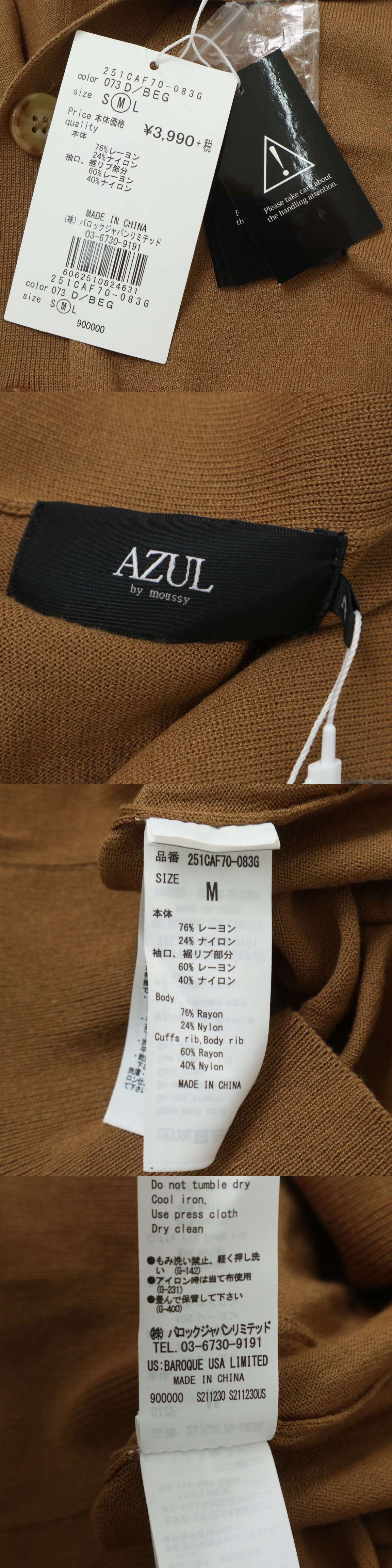 【新品 未使用】 AZUL by moussy アズール マウジー 通年 ニット★ レーヨン Vネック カーディガン 羽織り Sz.M メンズ 收藏