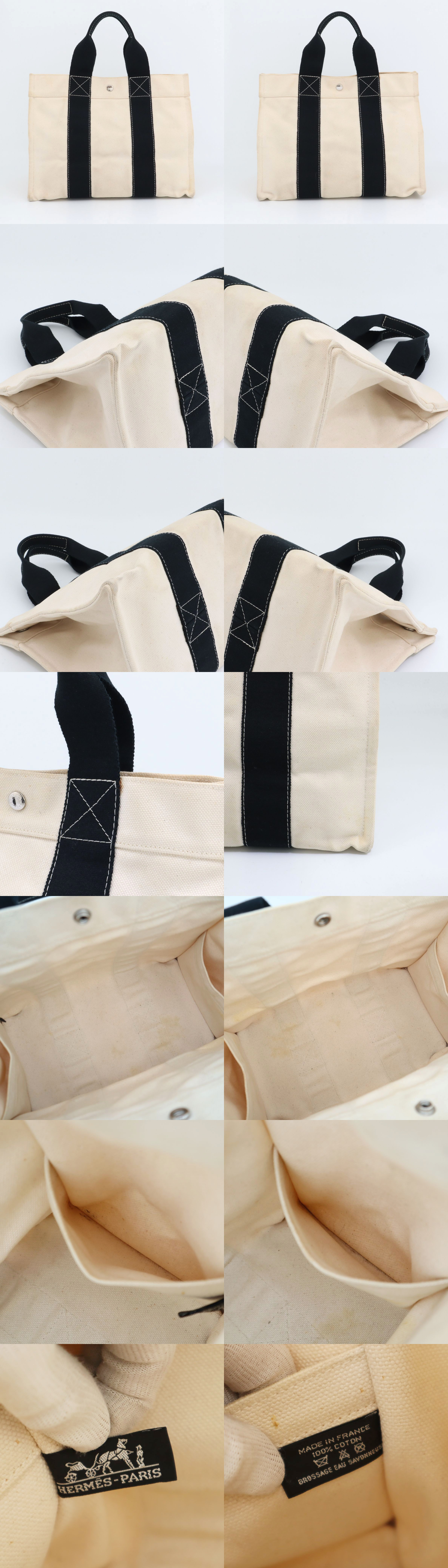 エルメス HERMES ボラボラPM ハンドバッグ トートバッグ キャンバス アイボリー×ブラック メンズ レディース シルバー金具 收藏