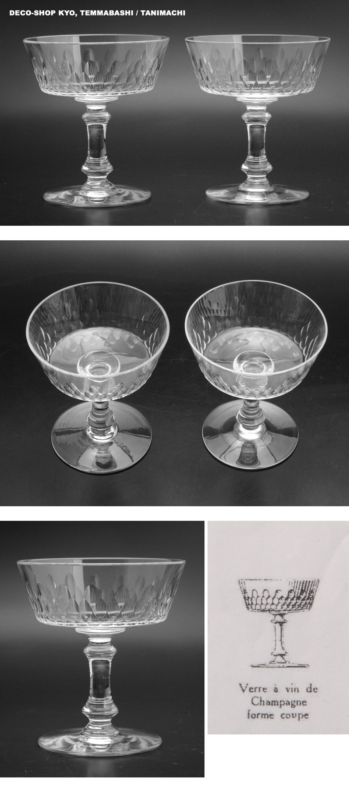 バカラ!!アールデコ期名作・細密カット装飾リシュリュー・Richelieu!! 貴重シャンパンクープ・2点セット!! 收藏
