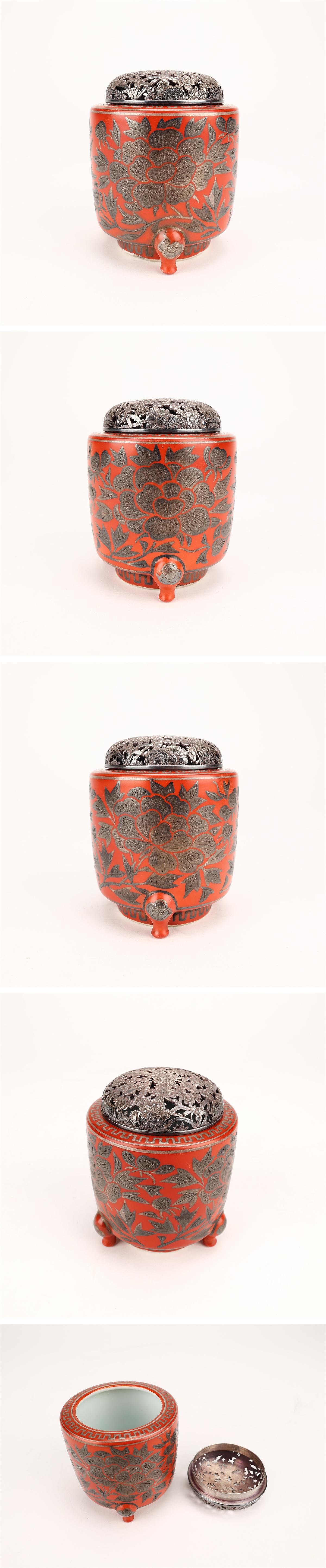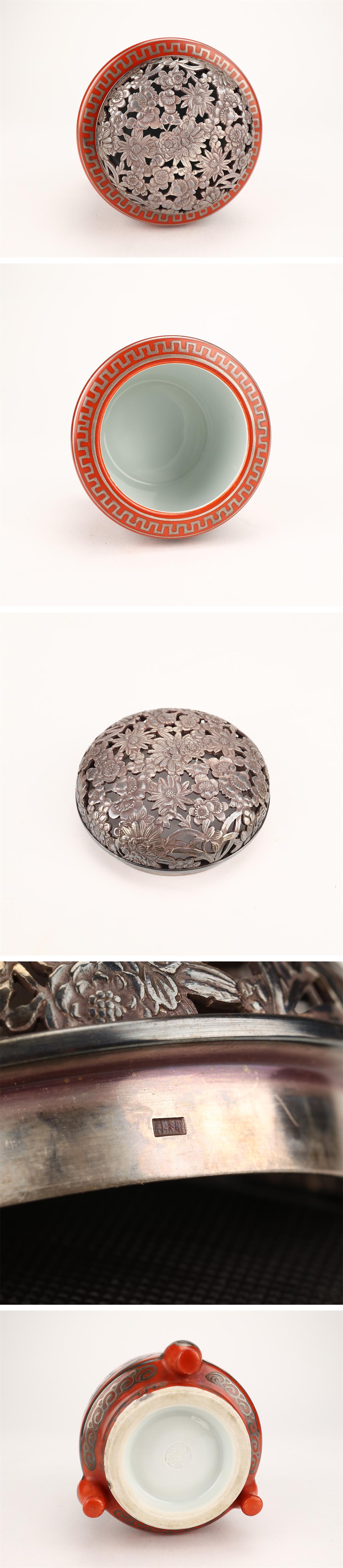 【吉】CO441 【二代 清風与平】 赤絵銀襴手 香炉 純銀火屋重46g/共箱付 本物保証 美品ZR! 收藏