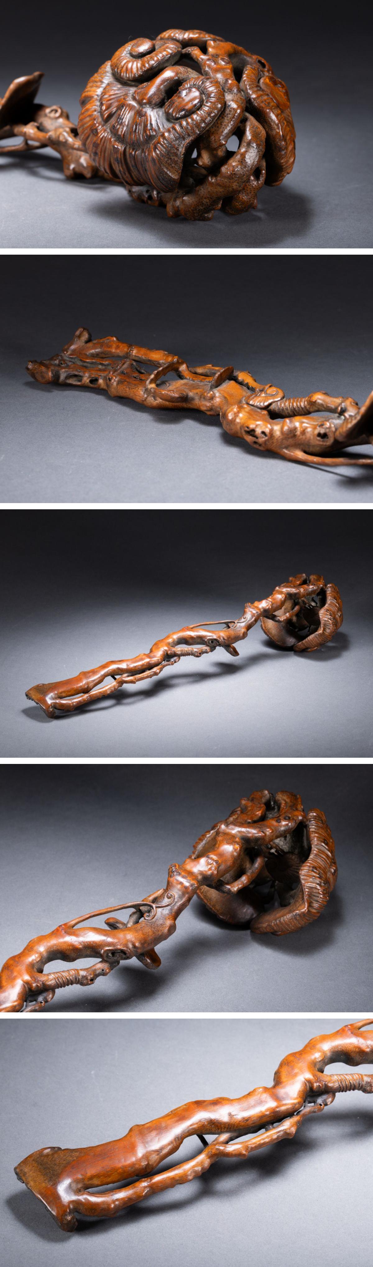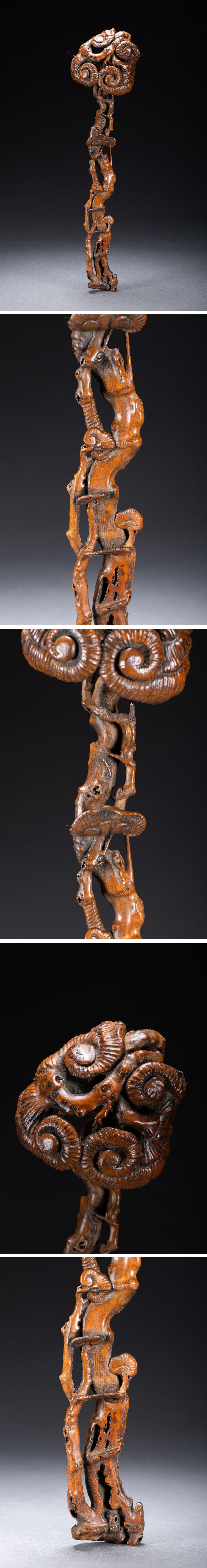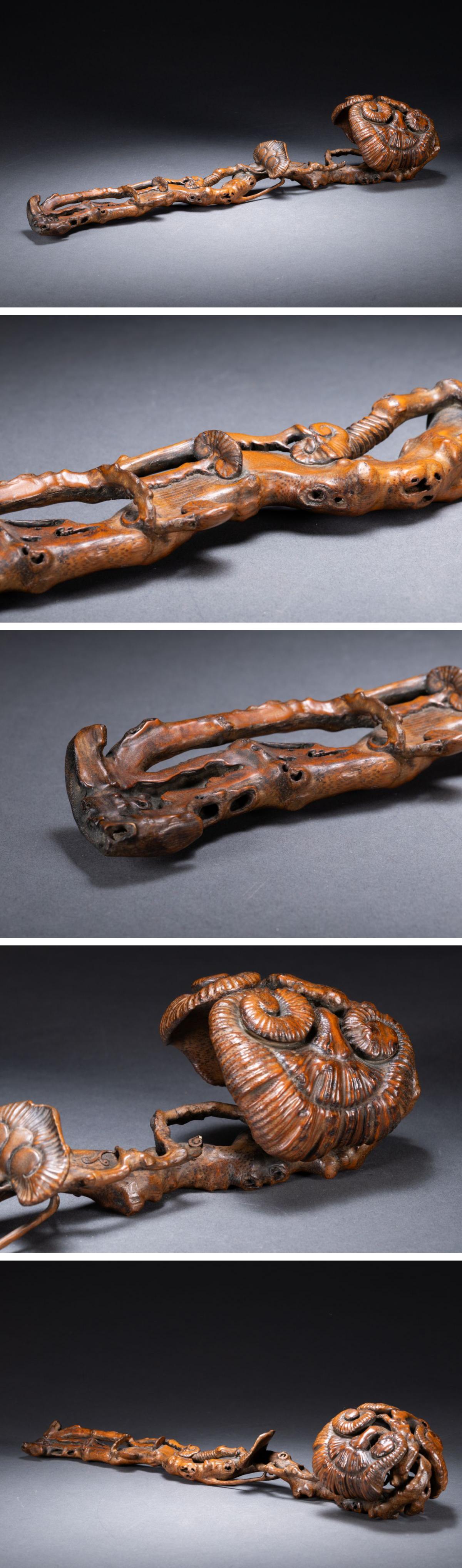 【清】関西某オークション購入 中国伝来 清時代物 古竹根彫 随形如意置物 当時物 時代コレクションZ-86S10 收藏