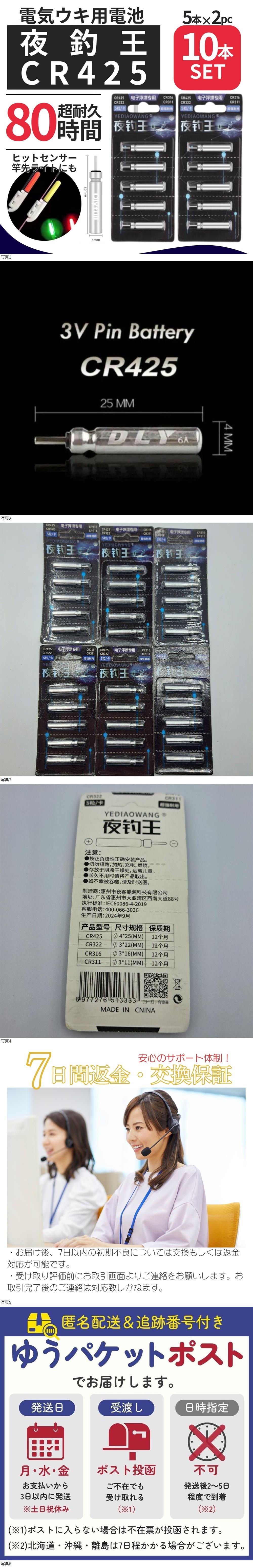 電気ウキ 電池 CR425 10本 夜釣り 竿先ライト ヒットセンサー デンケミ ピン型 ナイトゲーム 集魚灯 ケミカルライト 長時間 アタリ 釣り具 收藏