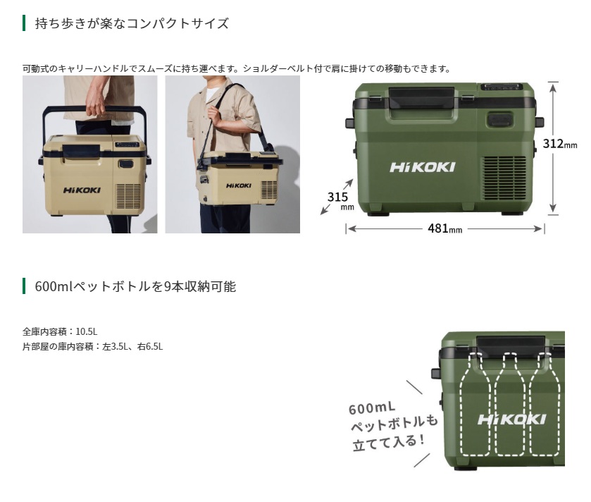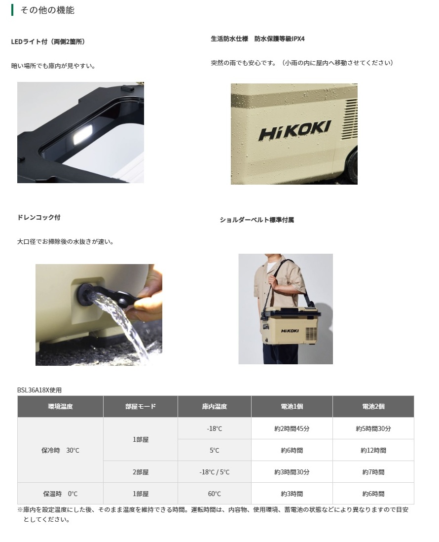 HiKOKI製 コードレス冷温庫 10.5Lタイプ サンドベージュ UL18DDXMBZ《本体+BSL36A18X(2個)》 收藏