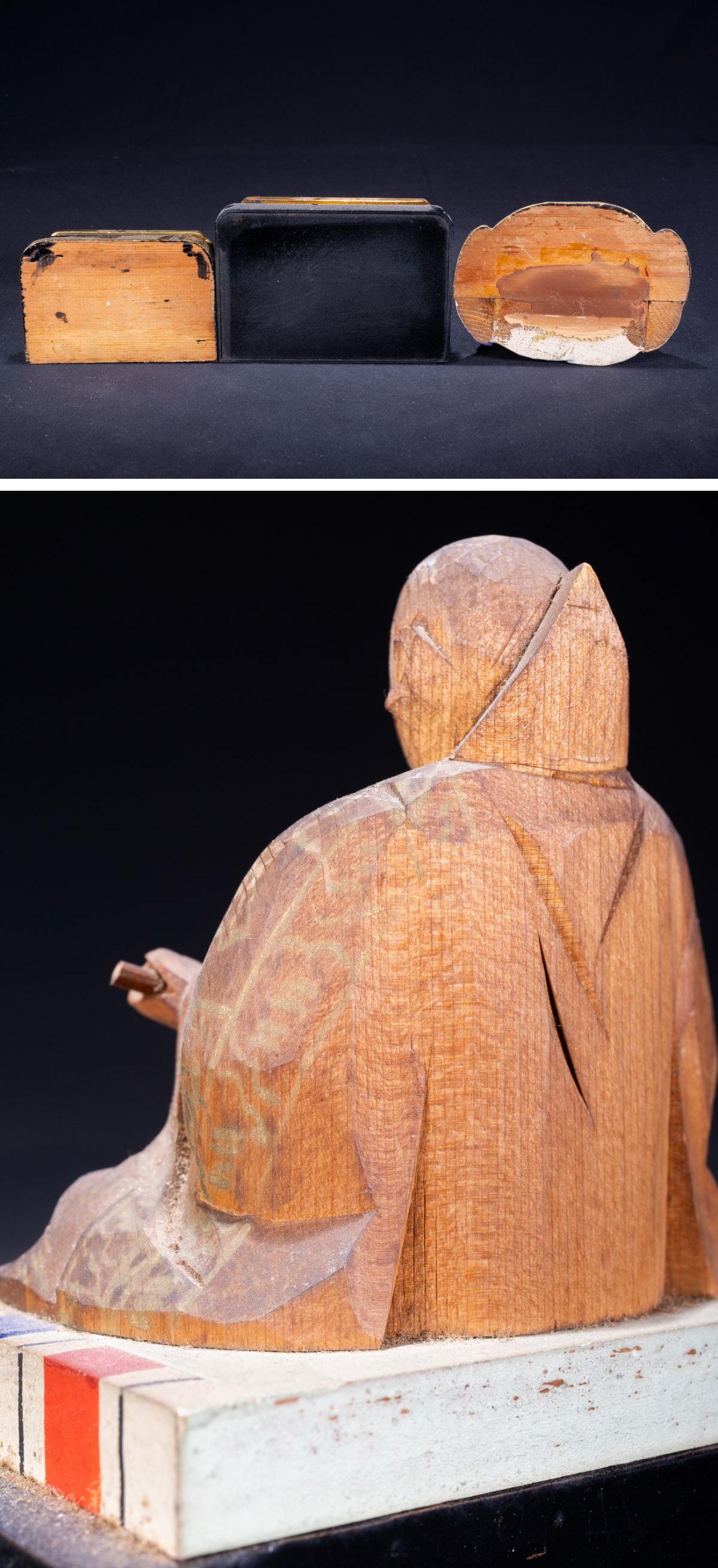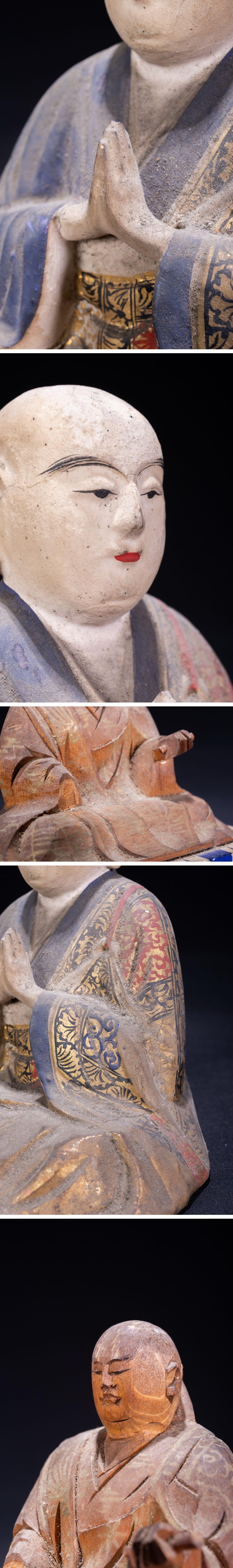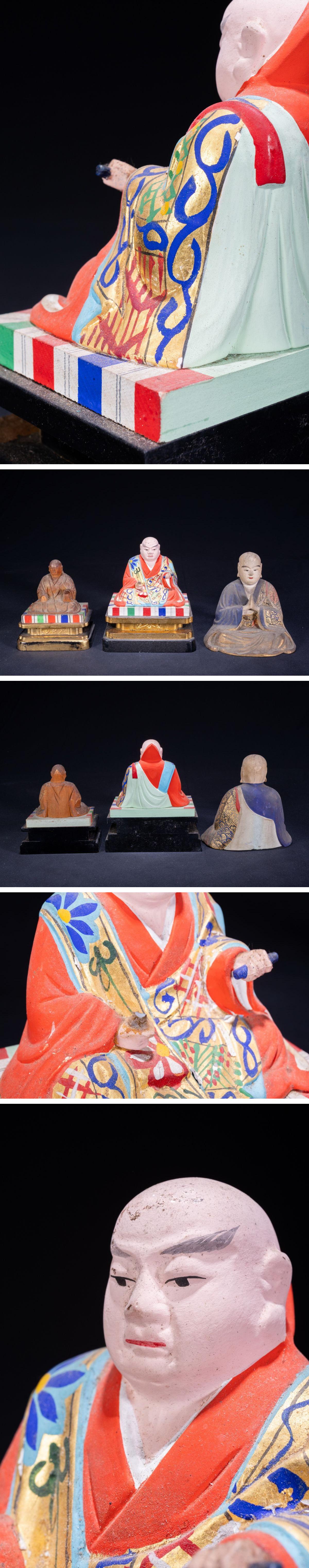 【珍品堂】1円から 仏像 日蓮宗 日蓮上人 東洋彫刻 木製 3個 伝統工芸H14.5cm M-A44J-F3 收藏