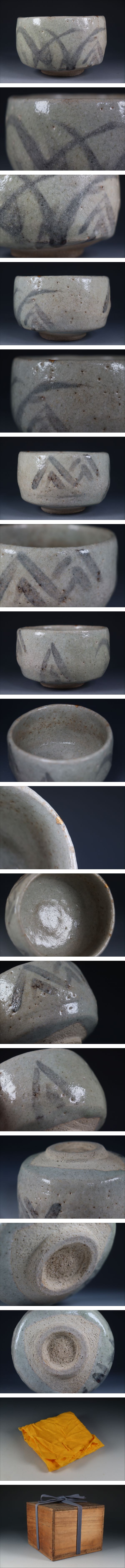 | 商品説明 | 商品名:蔵出し品 古志野 桃山~江戸初期 絵志野 茶碗 付属品:時代箱あり。 サイズ:高さ8,5cm、口径12,7cm、高台5,9cm。 状態:経過のスレ、金直しが1か所ございます。 |