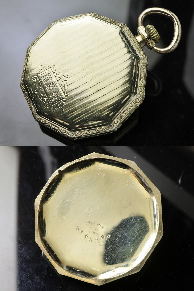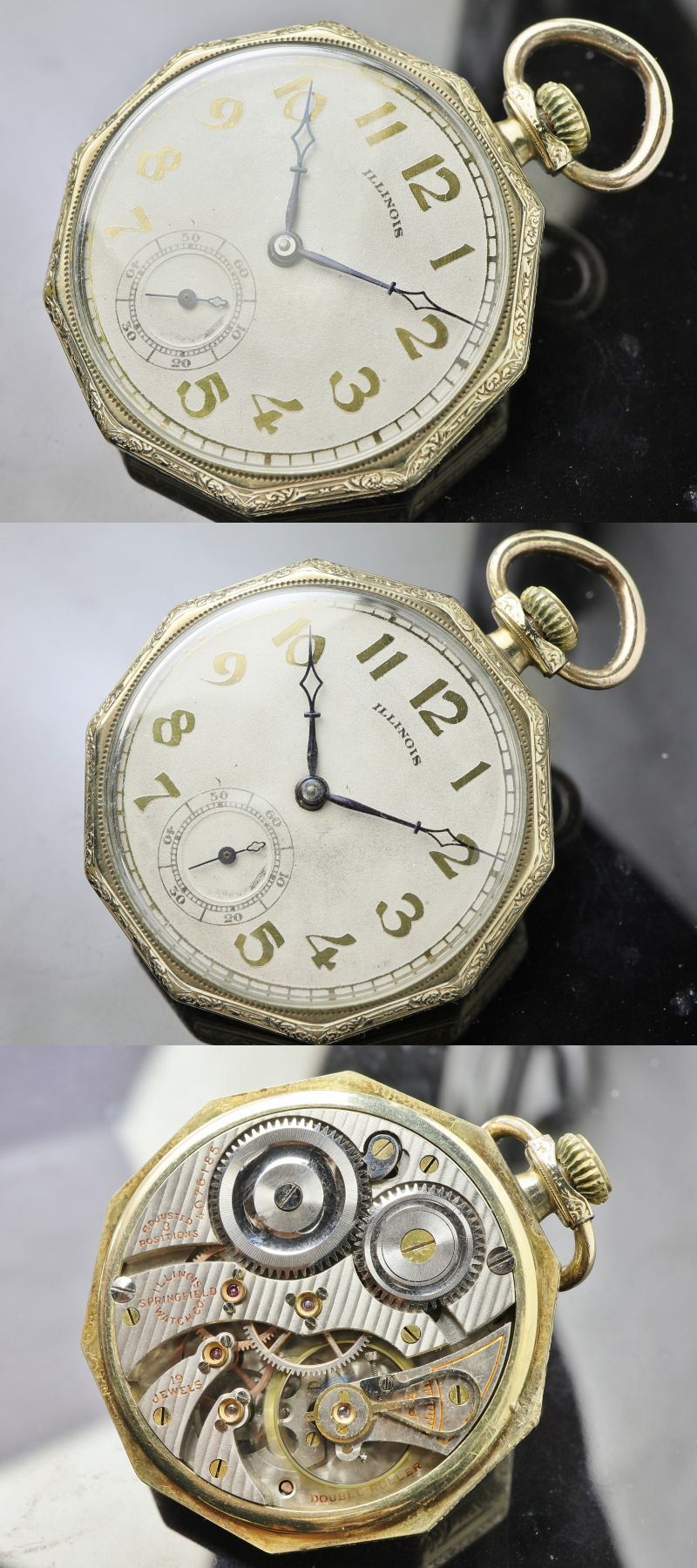 Illinois 19石 デカゴン Decagon 10角ケース 12s 懐中時計 1922年 大正11年 金 スワンネックマイクロアジャスター 收藏