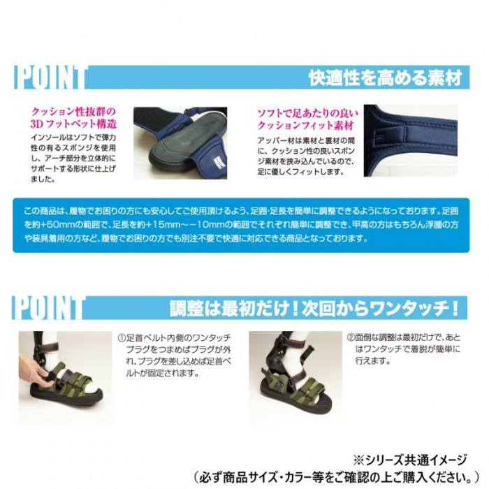 | 長さ調整自在のベルト採用により、ベルト伸ばし等の別注の必要性を大幅に軽減。装具着用の方やむくみのある方でも別注いらずで、そのまま簡単にご使用いただけます。 |