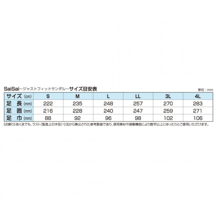 | 素材・材質 | 甲材:合成繊維、合成皮革 底材:EVA、合成ゴム |