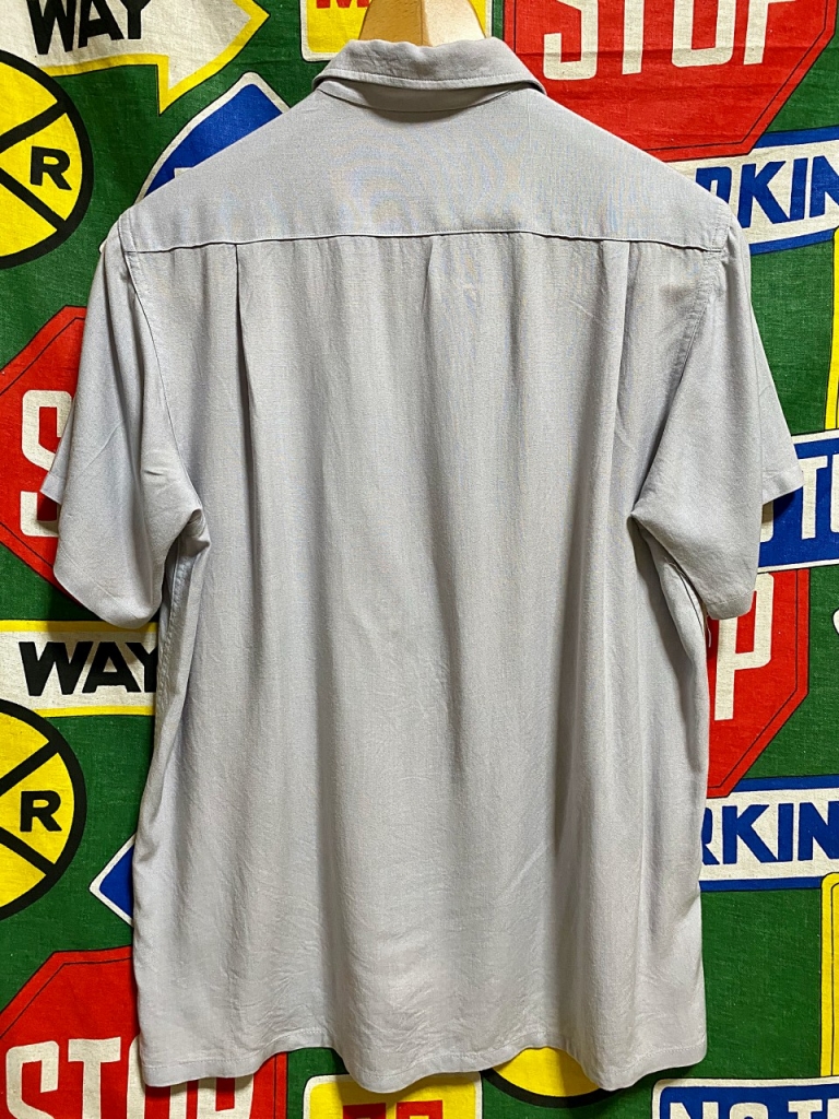 ★面白い斜めプリントの1枚★Made in USA製アメリカ製Berma Pride攻撃船プリントレーヨンギャバシャツオープンカラー60s60年代ラベンダー色 收藏