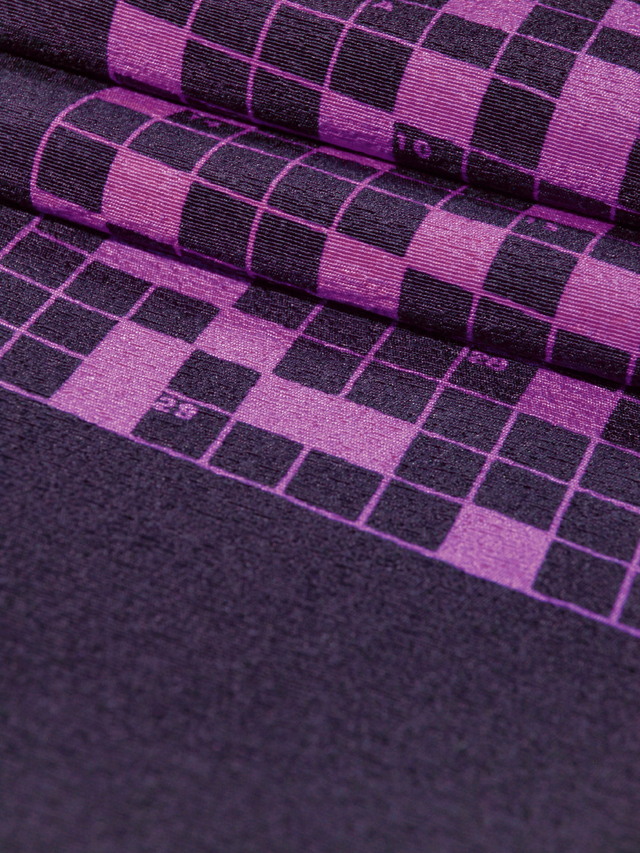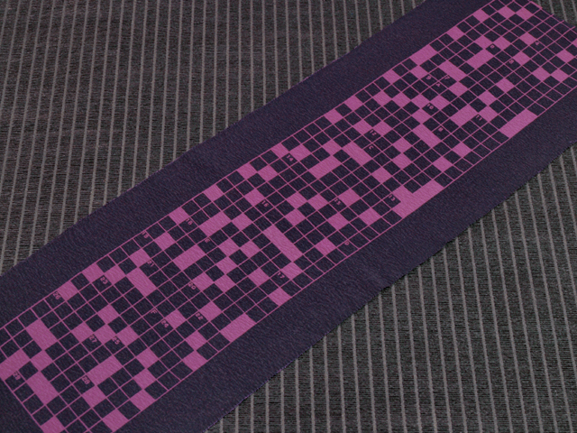 | 詳細 | 紫黒(しこく)色の地にクロスワードパズルの文様が染められた縮緬の半衿です。 未使用保管品で、しみやよごれ、褪色などのダメージもありません。新品同様です。 |
