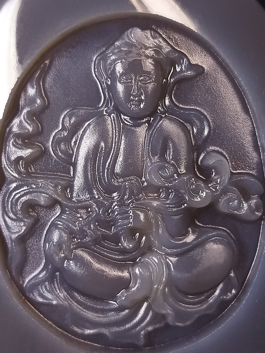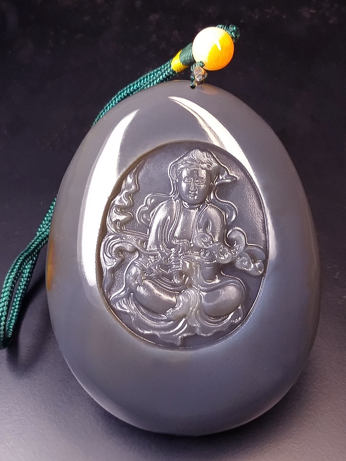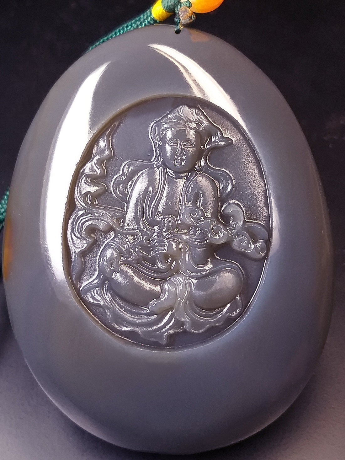 ●簡要説明:この出品は、天然最高AAA級極品特大高彫珍稀纏絲水胆藍瑪瑙『観音様』玉珮 (根付、ペンダントトップ、提げ物、置物)『観音様』です。