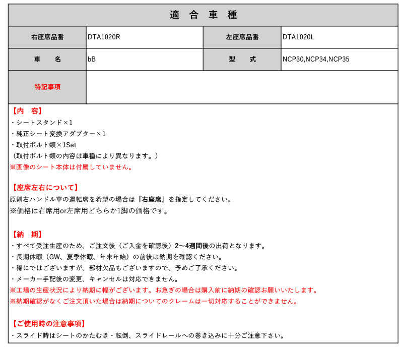 [N SPORT]NCP30,NCP34,NCP35 bB純正シート用ゲーミングシートスタンド(キャスター無し)[6×6ポジション] 收藏