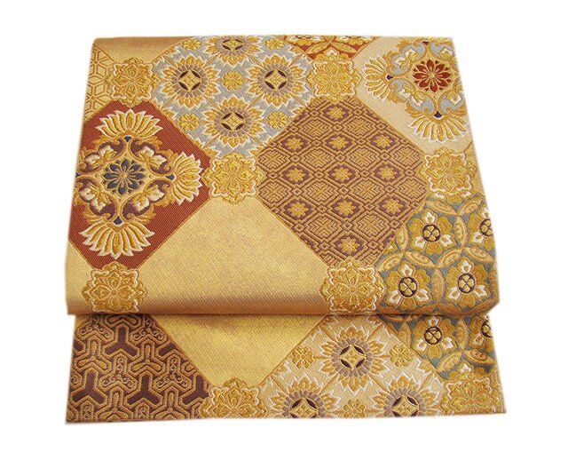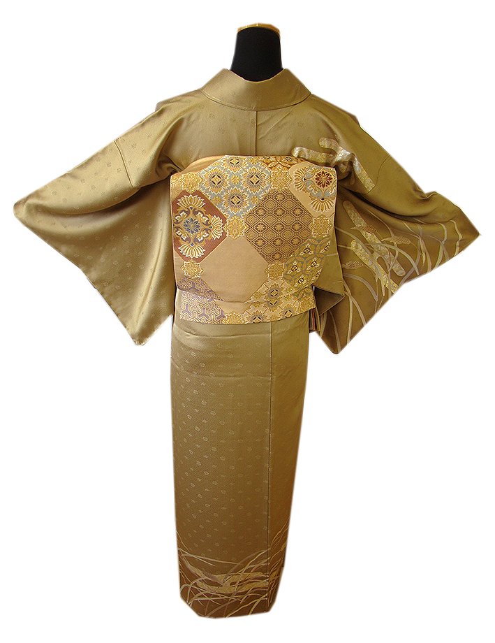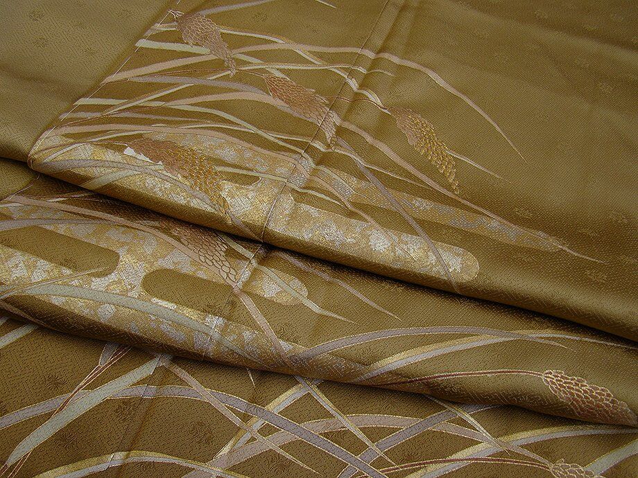 値下げ!時代屋 裄63.3cm S寸 紋意匠地 金彩加工染 附下げ 訪問着 袋帯 帯揚げ 帯〆 セット 正絹 袷 未使用 146cm~153cm L912 收藏