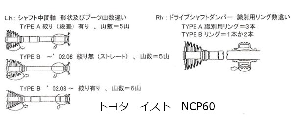 ヴィッツ NCP10 2NZ RS,Type C 1300cc 2002年08月~ ※現車の年式・ドライブシャフトTYPEを確認の上、ネオブーツを選定して下さい。 取付位置:アウター側