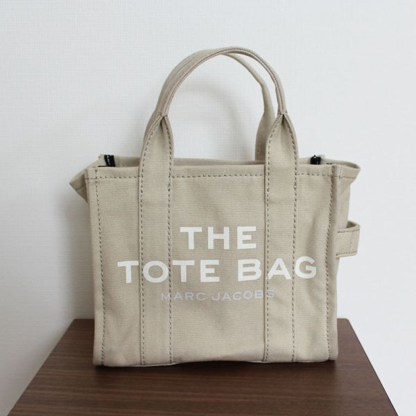 MARC JACOBS(マークジェイコブス)のTHE MINI TOTE BAG(ザ ミニ トート バッグ)です。 2回程使用しました。 ZOZOTOWNで購入した本物です。 ロングウォレットはもちろん、500mlのペットボトルもすっぽり入るサイズ感です。 取り外し可能なウェビングストラップ付きなので、クロスボディバッグとしても使えます。 ショルダーも付属していますし、手ごろなサイズで大変気に入っているのですが、身近に同じ物を持っている人がいたので出品することにしました。 目立つ汚れや傷などもなく美品です。 ※写真1、2枚目は参考画像です。 実物は3枚目になります。 [カラー] ベージュ [サイズ] 幅:25cm 高さ:21.5cm マチ:9cm 持ち手:28.5cm 重量:500g [素材] コットン