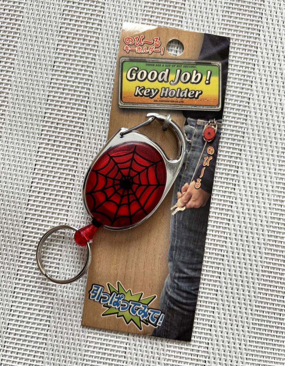 ☆【キーホルダー】★未使用★リール キーホルダー 蜘蛛の巣 のびーる カラビナ 希少 レア☆ 收藏