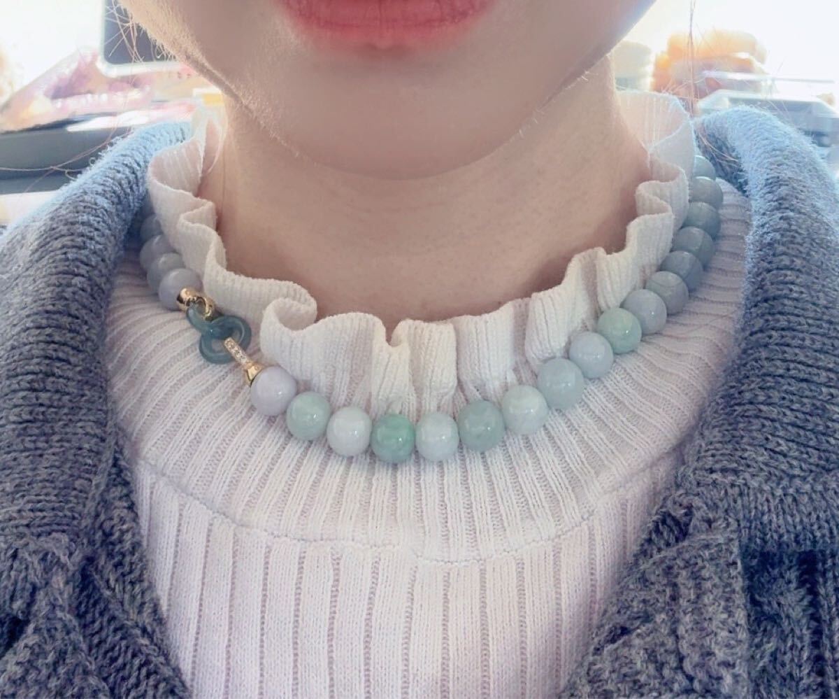 R2-0720天然本翡翠《本物保証》 天然本翡翠 一品一図 ミャンマー産天然翡翠 ネックレス約45cm 天然石 10mm一点物 希少 縁起物 お守り パワーストーン