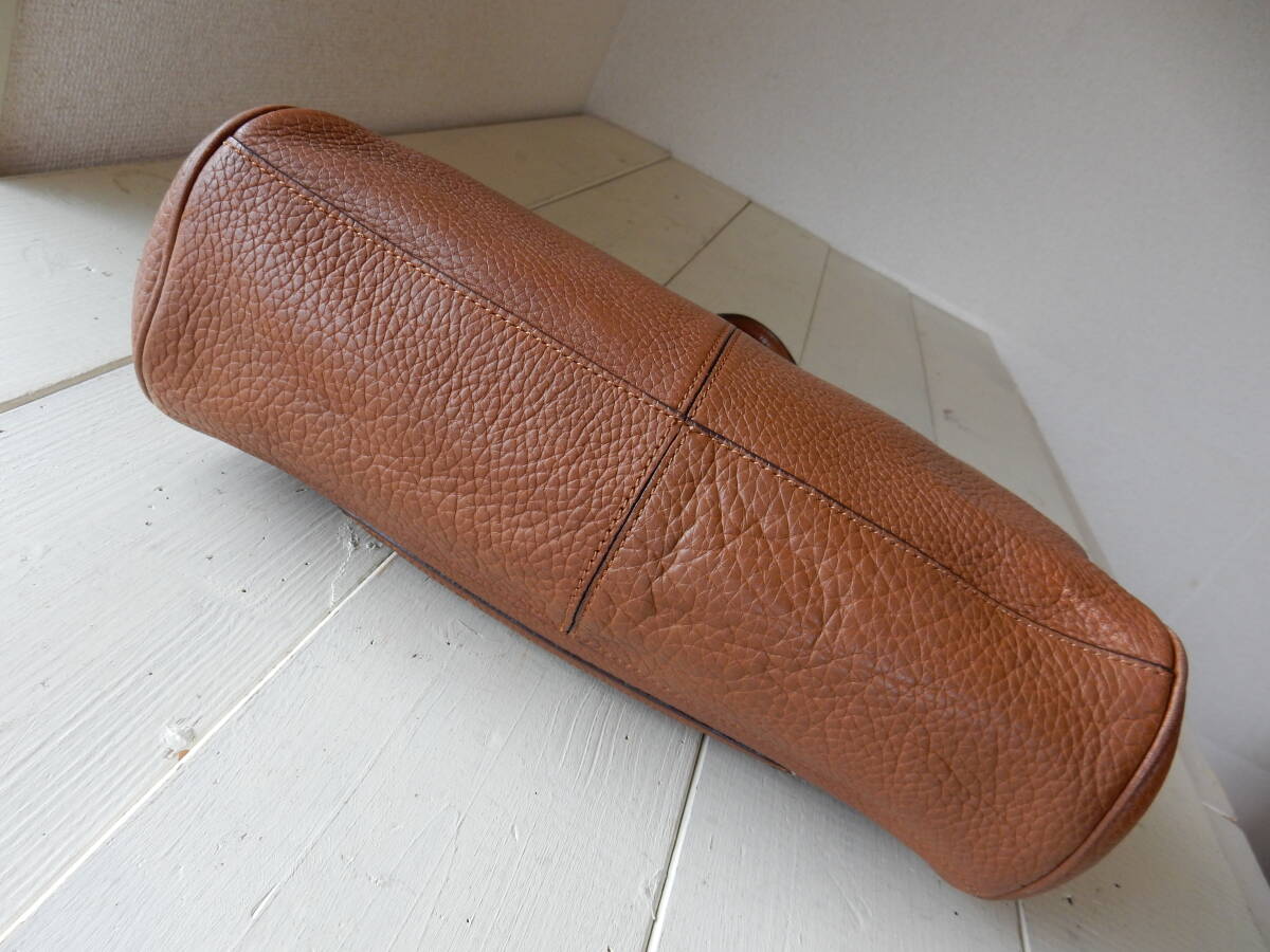 ロゴチャームとサイドロゴがアクセントとなった本革トートバッグ。
