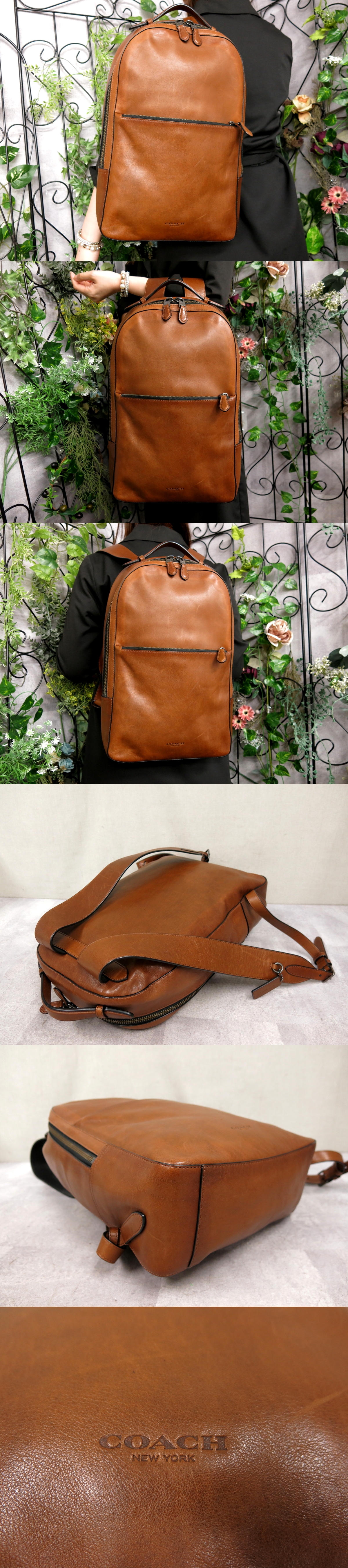 超美品●COACH コーチ●メンズ●メトロポリタン ソフト バックパック●ロゴ型押し●カーフ レザー●リュックサック●キャメル●A4●Js56264 收藏