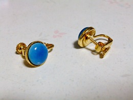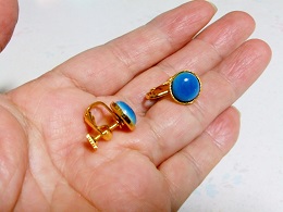 素材 | ★素材:銅版 ★七宝釉薬:メルヘンブルー ★メッキ:金メッキ 留め金具:ネジバネ式 |