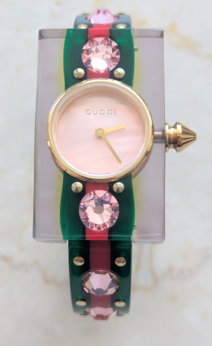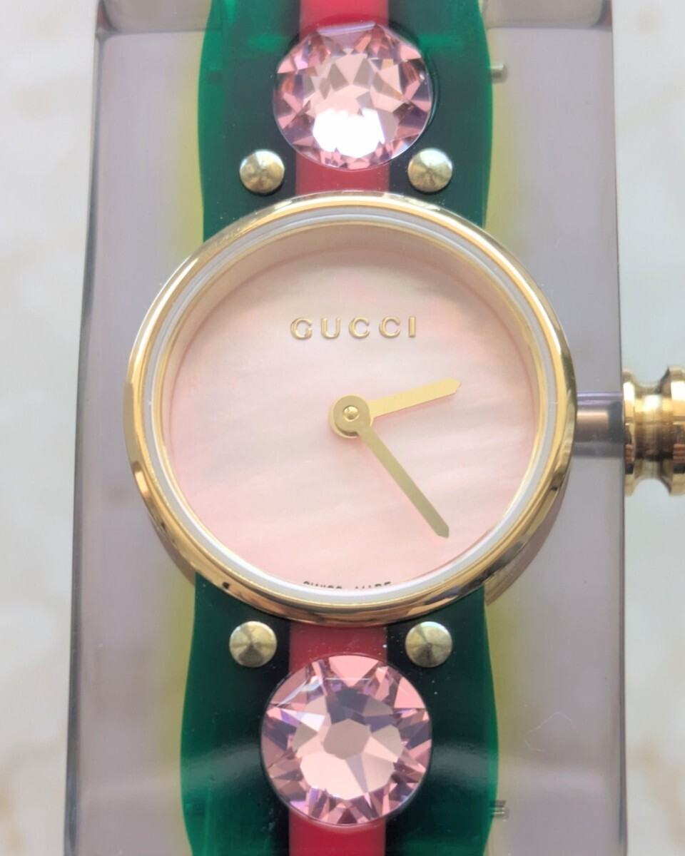 新品未使用 GUCCI 腕時計 レディース ヴィンテージウェブ プレキシグラス YA143525 マザーオブパール ピンク| 出价者 | 信用 | 价格 | 时间 |