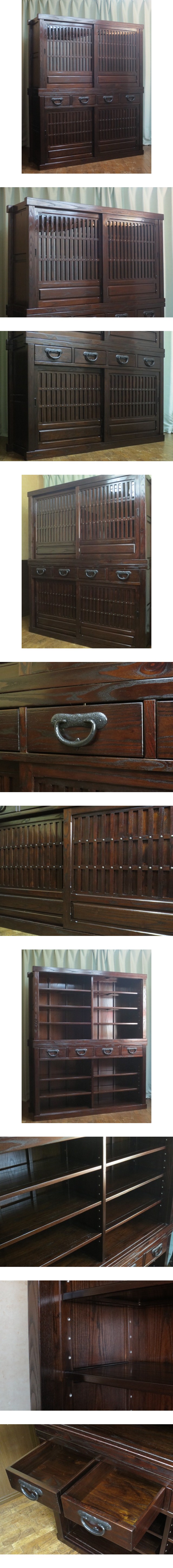 美品 広島県 博永家具【松尾 博昭】作 総無垢材 拭き漆 太鼓鋲 みざら戸 5尺 民芸 水屋箪笥 定価88万円/伝統工芸/和家具 收藏