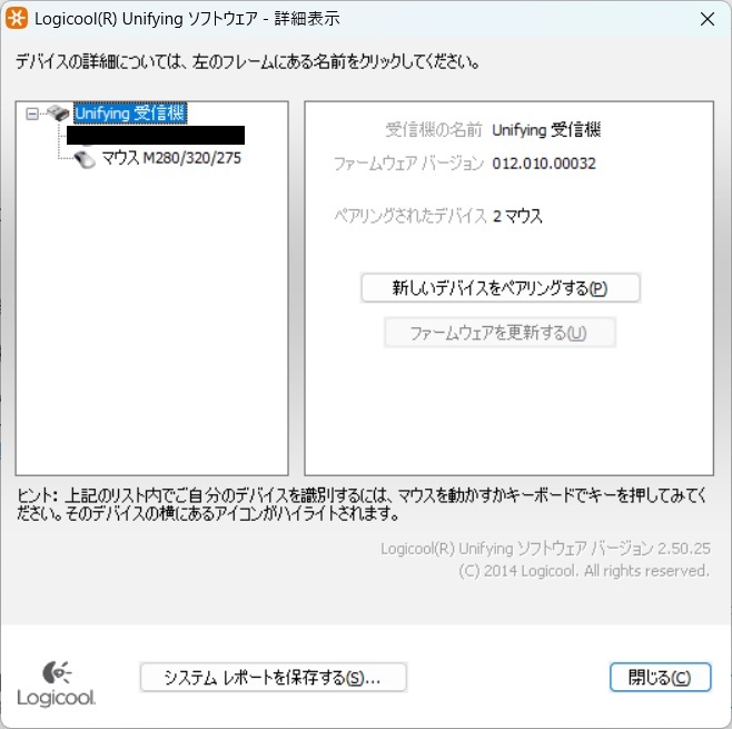 ・お手元のUnifyingレシーバーとのペアリングはメーカーHPにて配布されているツールを使用することで簡単に行えます。