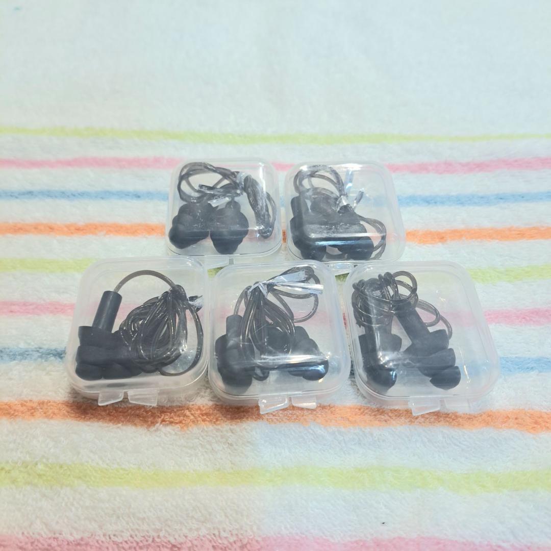 5個 耳栓 シリコン 3層 紐付き 黒 サーフィン サーファーズイヤー 就寝 睡眠 勉強 水泳 シュノーケル ひも付き 落下防止 サーフ 川遊び