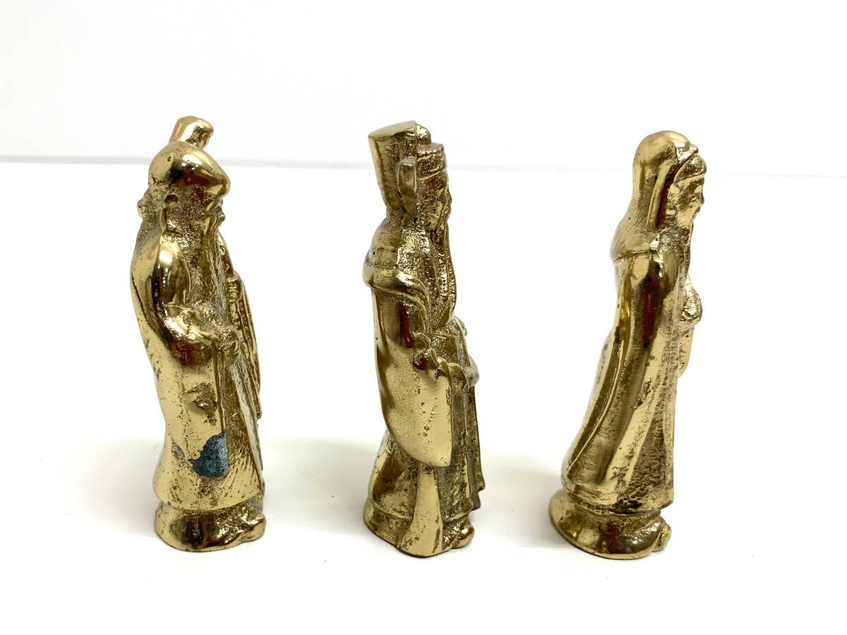 C93 中国 金属置物 福禄寿 3体セット 開運 縁起物 約8cm 金色