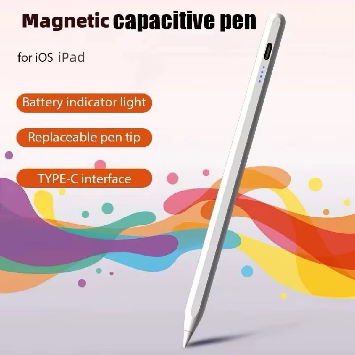 高感度ユニバーサルスタイラスペン Apple Pencil互換 iPad/iPhone/Android/タブレット/スマホ用 タッチペン USB-C充電式 磁気吸着