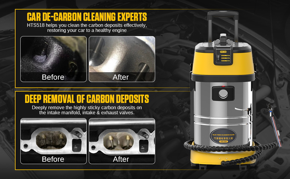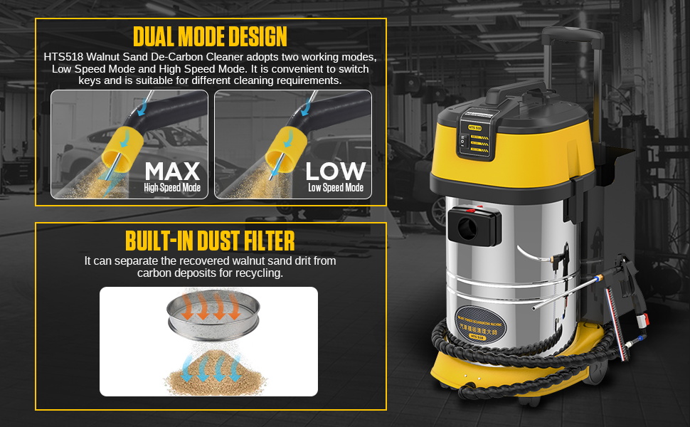 √外部空気源: HTS518くるみ砂DEカーボンクリーナーは、くるみ砂グリットがより強力に、より効率的にカーボンを叩くことができます。