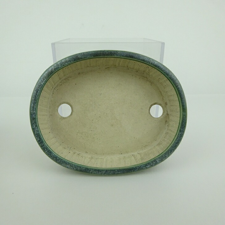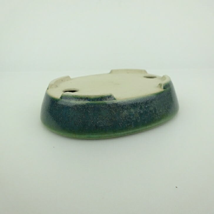 【中古】盆栽鉢 青香 小鉢 長辺 約10cm 楕円鉢 釉薬 現品 中古鉢 收藏