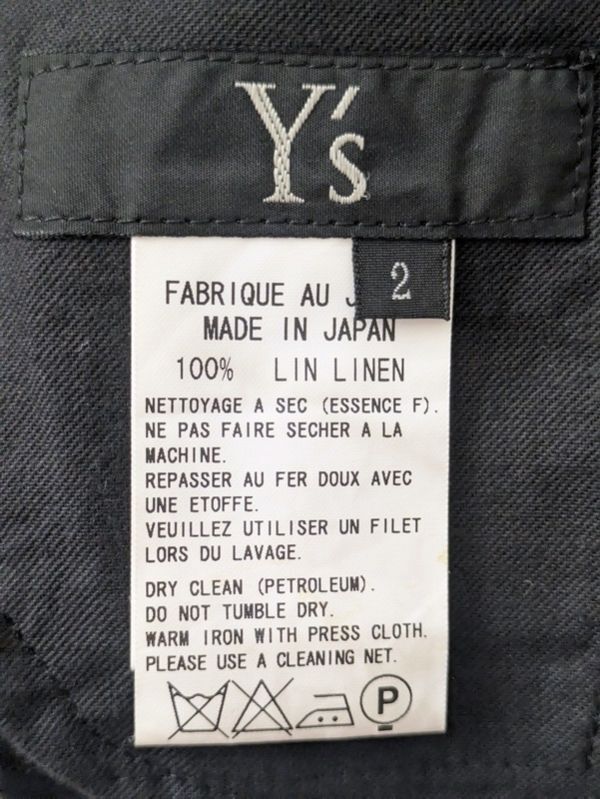 Y'S ワイズ 麻100 チェック リネンパンツ サイズ2 大胆なチェック柄 YS-P06-306