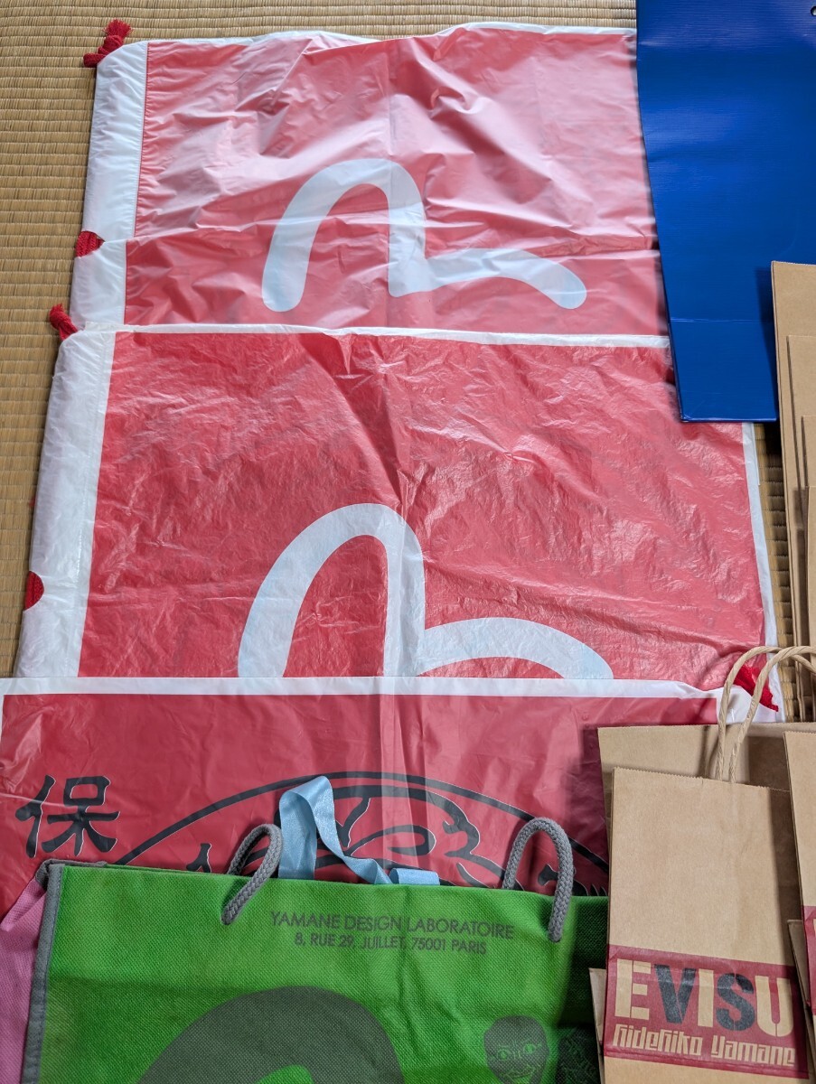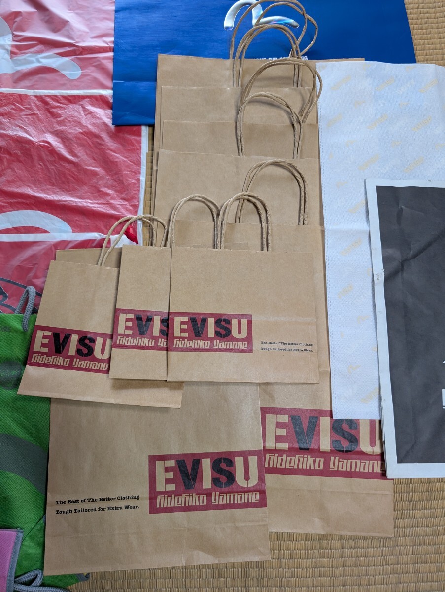 昔のエヴィスと今のエヴィスの購入時袋セット売りになります。商品が入っていたシワなどある為中古品とご理解下さい。
