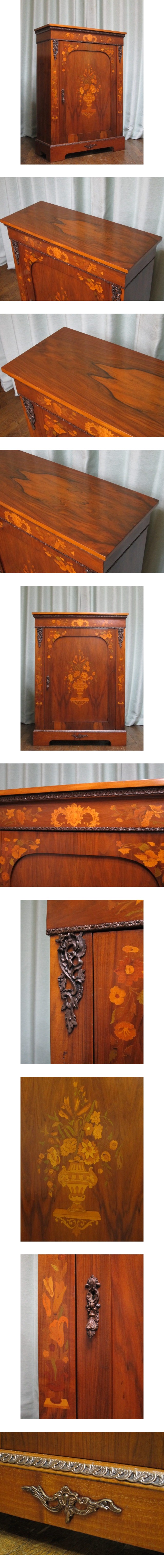 フレンチアンティーク 木象嵌 オルモル装飾 ピアキャビネット 鍵付き/飾り棚/コンソール/サイドボード/フランス/イタリア/西洋/クラシック 收藏