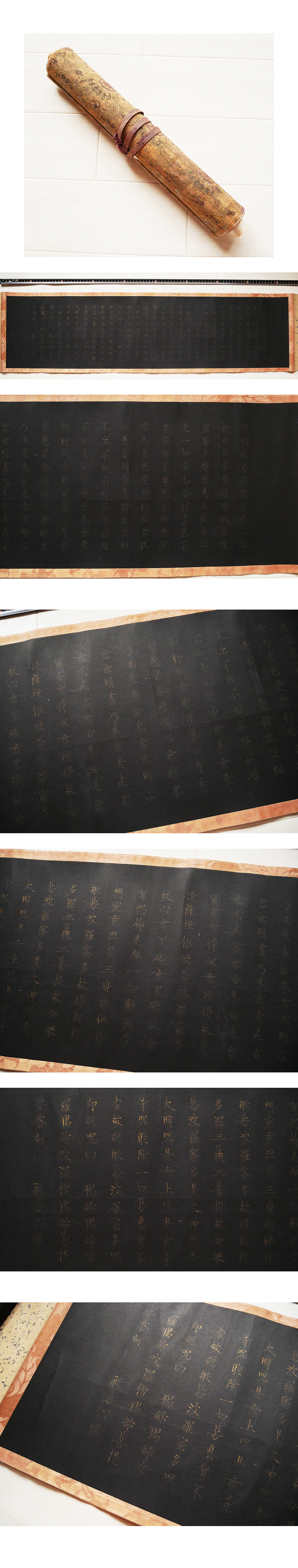 【真作】巻物『 紺紙金泥経 般若心経 古写経 』平安時代 古筆古文書 仏教美術 中国唐物唐本 收藏