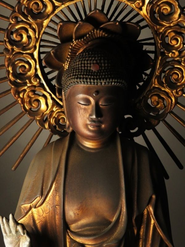 | 商品説明 | ●仏教美術 寺院 初出し 江戸初期 木彫 玉眼 阿弥陀仏 立像になります。古い物ですが極力状態の良い作品を出品しておりますので是非ご覧ください。 【状態】 ●画像でのご判断をお願いいたします。 【サイズ(約)】 ●(光背含む)高さ83㎝ 幅29.5㎝ 奥行23.5㎝ ●(仏像のみ※差し木除く)高さ38.5㎝ (素人寸法ですので、若干の誤差はお許し下さい) 【領収書に関しまして】 領収書発行は致しておりません。 !かんたん決済手続き完了時の確認画面をプリントアウトして領収書としてお使い下さい。 ※領収証として税務署に認められております。 ご了承のうえでのご参加をお願いいたします。 |