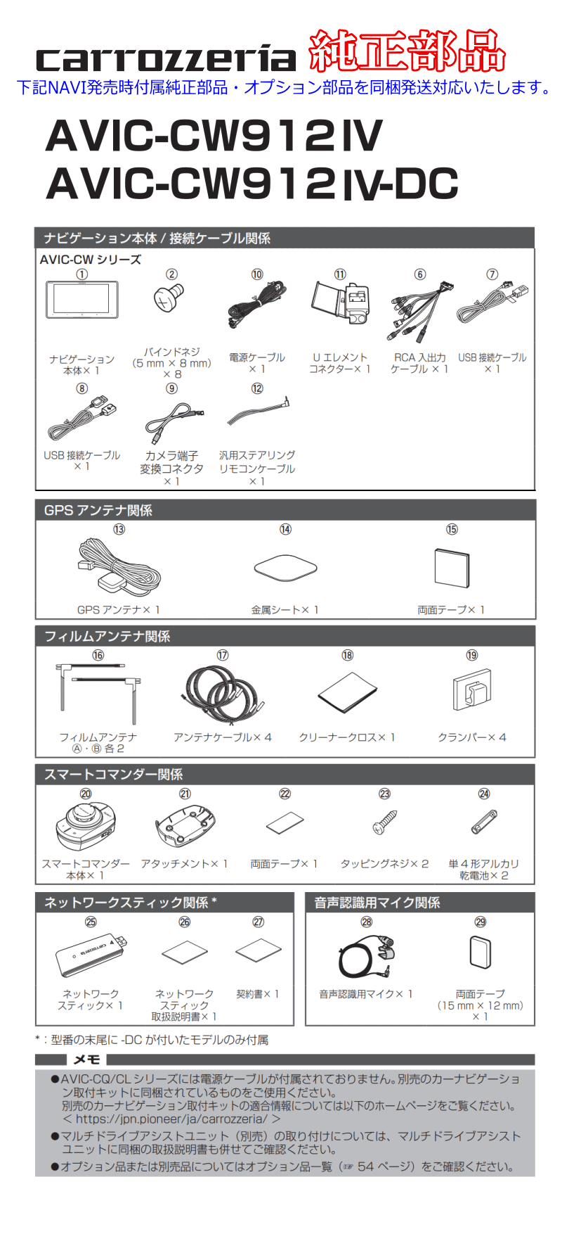 カロッツェリア carrozzria 純正品 AVIC-CW912IV AVIC-CW912IV-DC 純正部品 地デジ TV フィルム アンテナ ベース Set (074 收藏