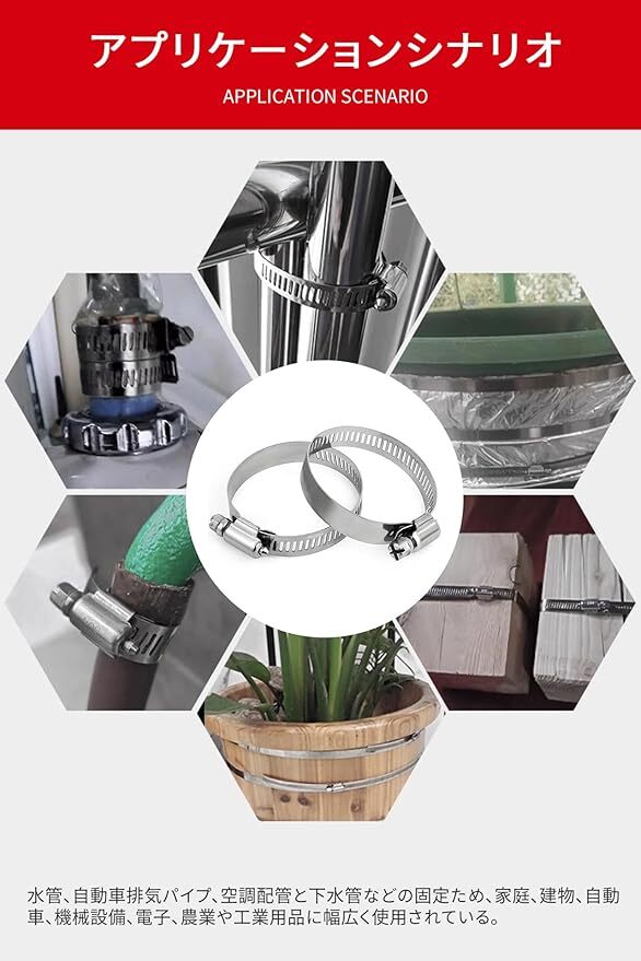 ◆【未開封・新品】ホースバンド ステンレス バンド 2個入り 直径194~216mm 12mm幅 プロ仕様 SUS304ステンレス製 耐腐食 耐久 水漏れ防止 收藏