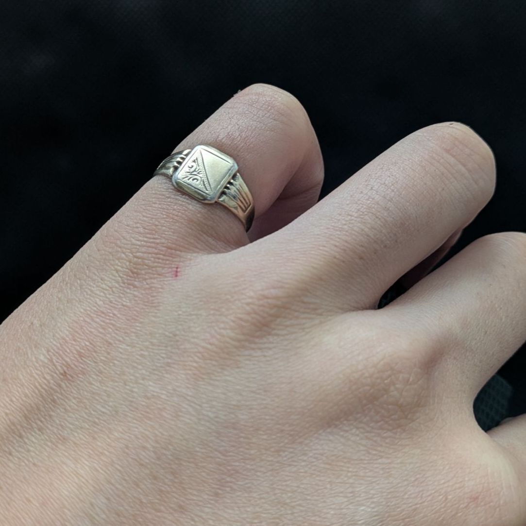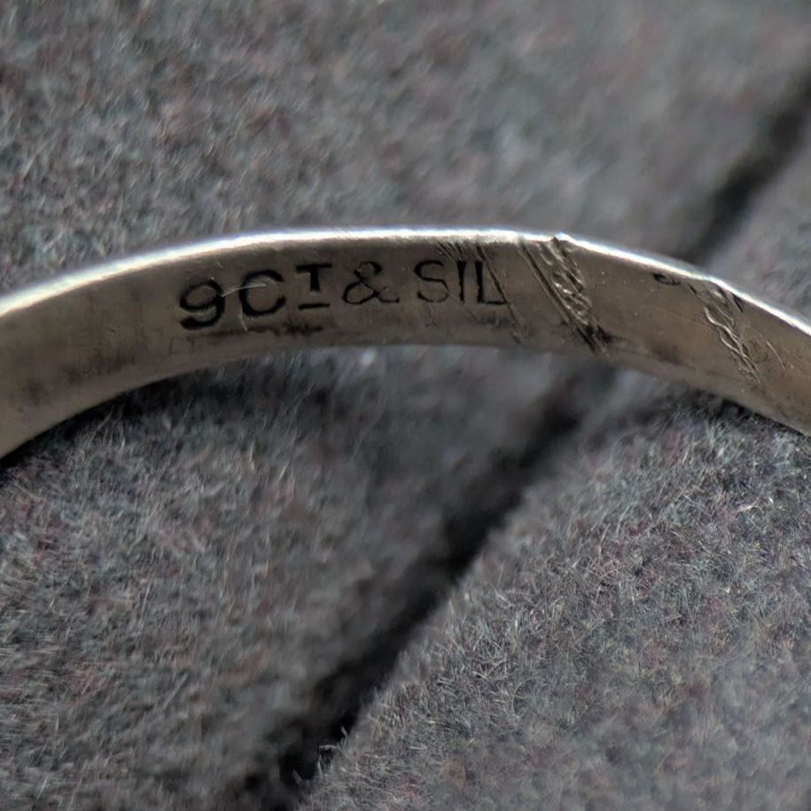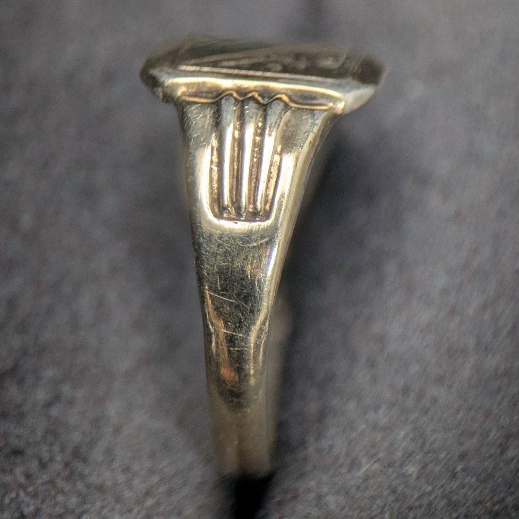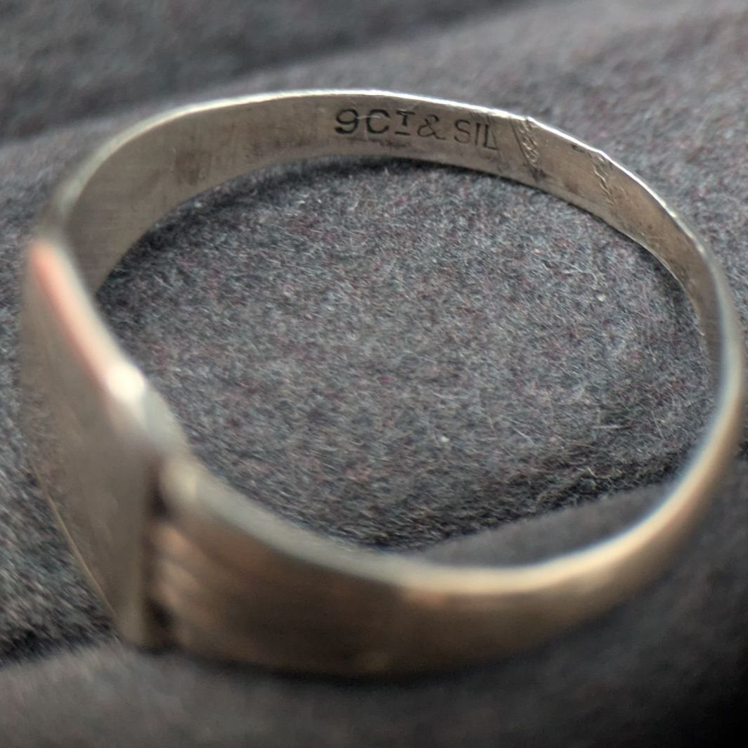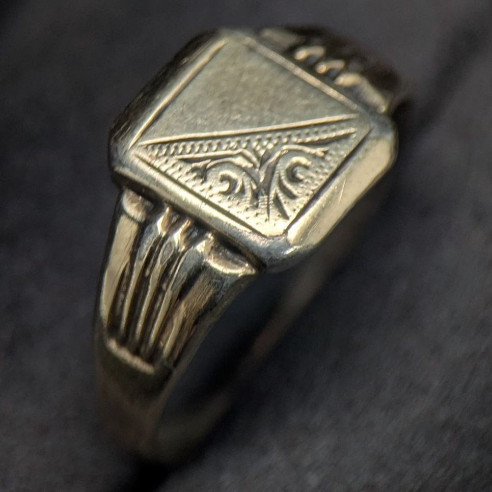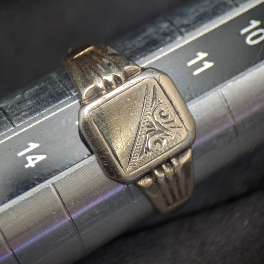 英国 イギリス製 9金 × シルバー コンビ スクエアシグネットリング 12.5号 2.8g 彫刻入り 9K リング 指輪 アクセサリー メンズ ジュエリー 收藏