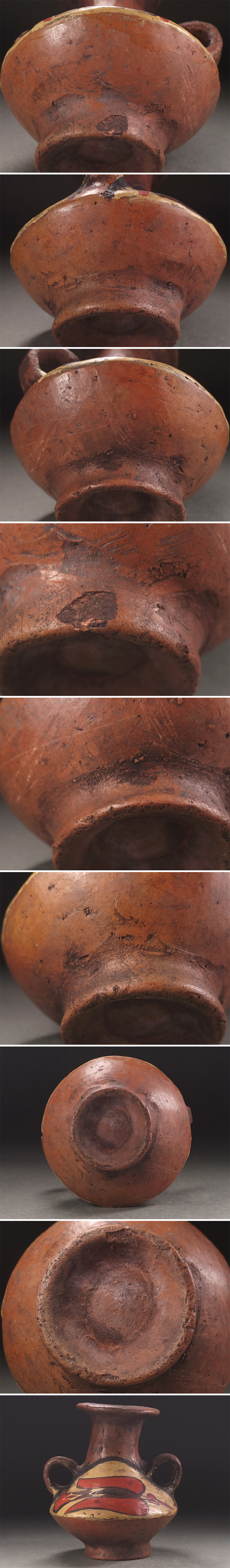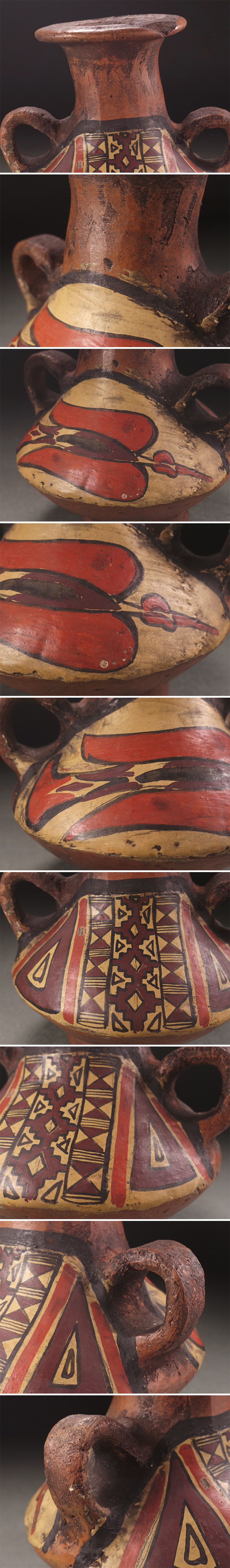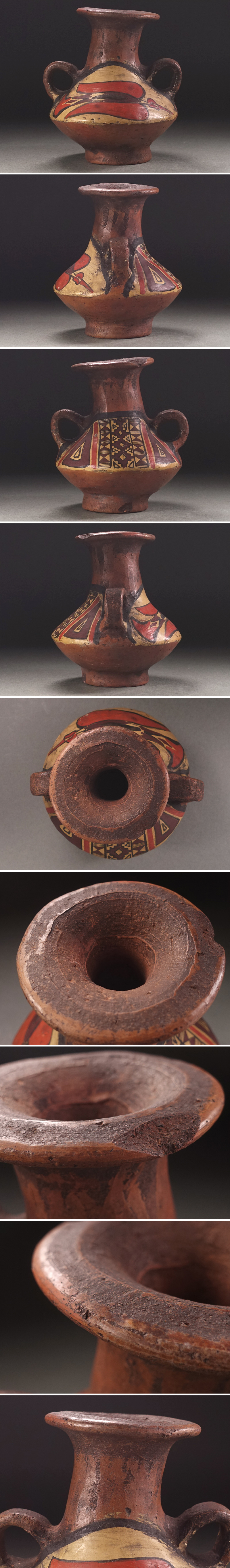 ∇花∇古代アンデス遺物 13~16世紀頃 ペルー・インカ文化 彩文土器 加彩鳥文耳付壷 收藏