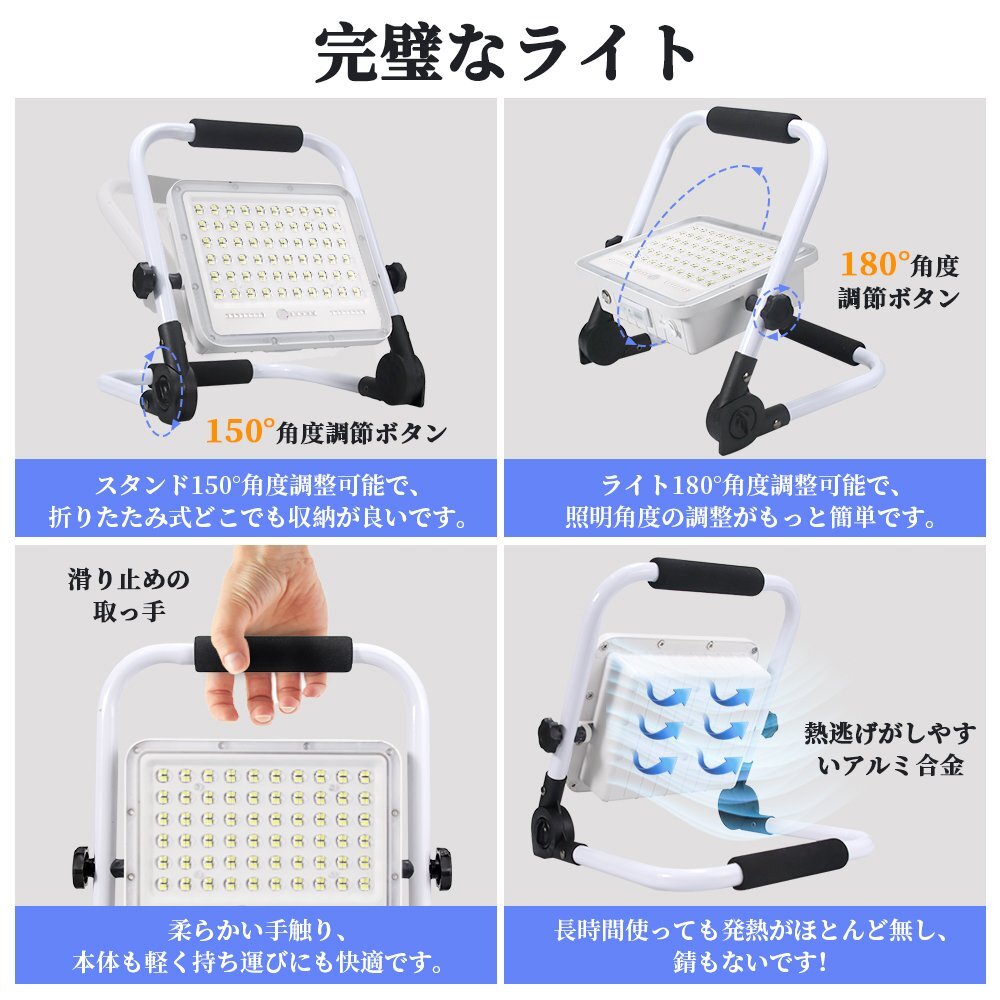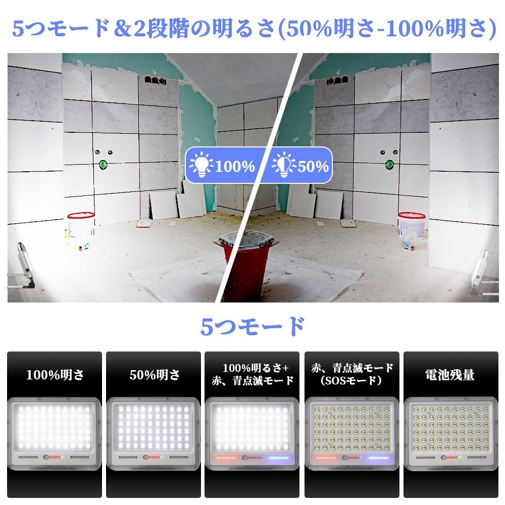 即納 投光器 4個セット led 充電式 100W・1000W相当 7200LM LED 充電式 5つ点灯モード 20000mAH 屋外照明 防水 送料無料 1年保証 收藏