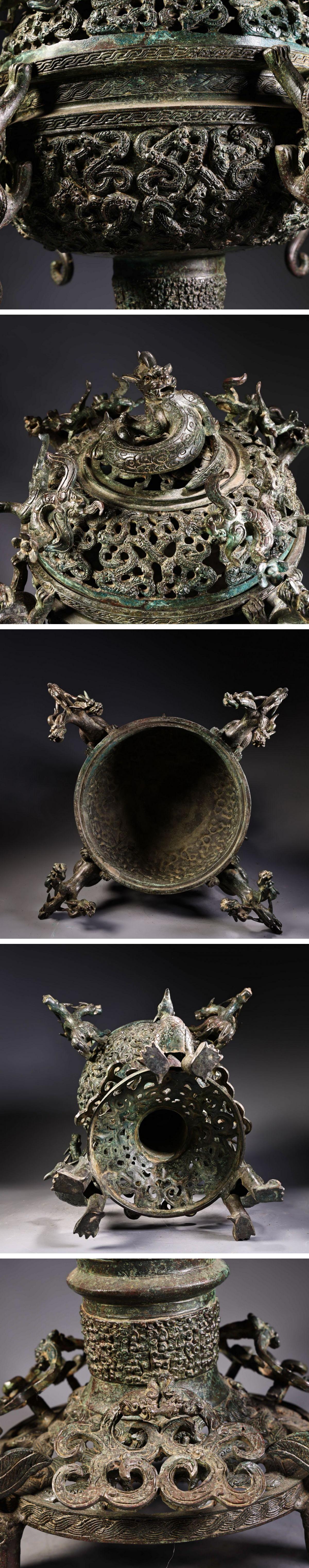 【清】某有名オークション購入 戦漢時代 青銅器 四龍紋巨大薫爐 材質保証 古置物 古擺件 古美術 時代コレクション7L9-OP12