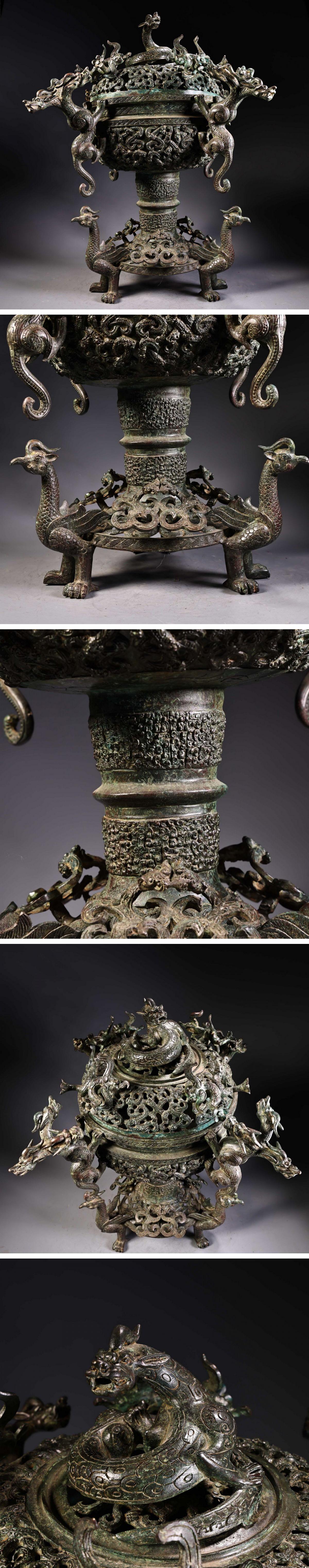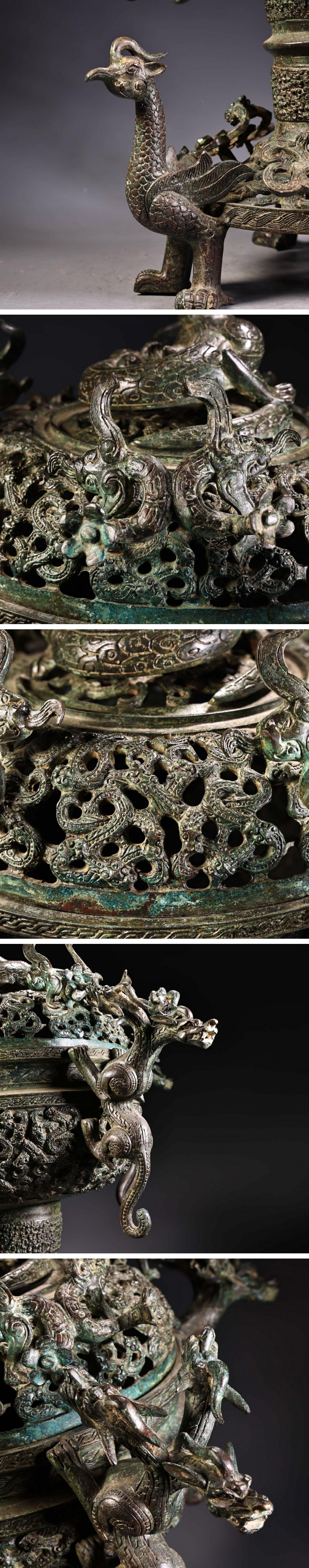 【清】某有名オークション購入 戦漢時代 青銅器 四龍紋巨大薫爐 材質保証 古置物 古擺件 古美術 時代コレクション7L9-OP12 收藏