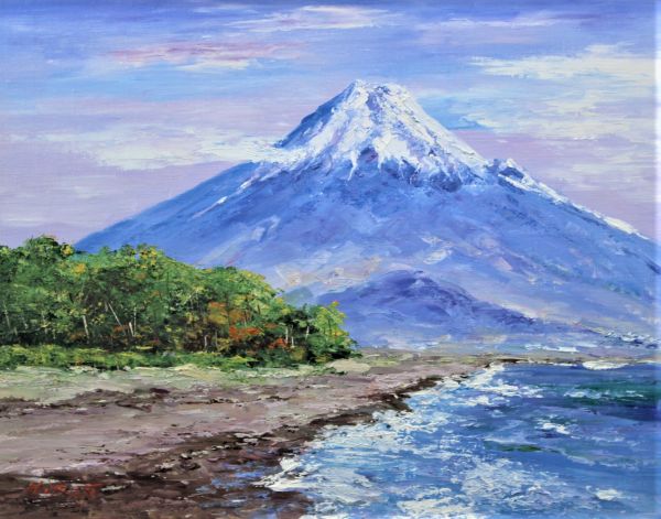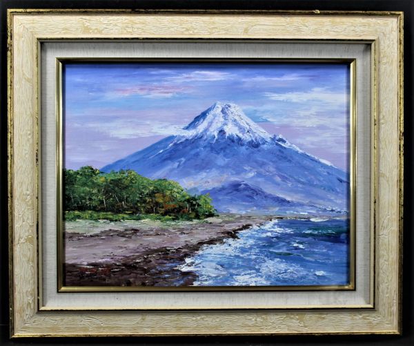 《真作》★西村 拡大【富士山】油彩 6号*無所属*市展.県展入選*一水会展*個展4*外遊2*G展*雪の富士と海*明るい色彩*香川*[桃] 收藏