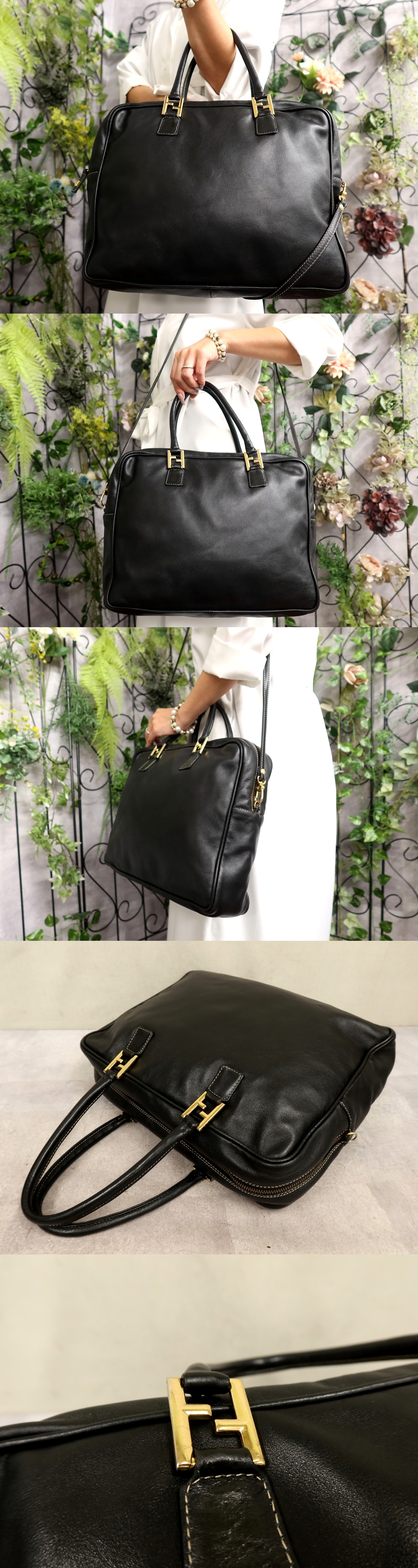 ●超美品●FENDI フェンディ●FFロゴ●カーフ レザー 本革●2way ハンド バッグ●黒●ゴールド金具●肩掛け●A4 書類 収納 かばん●Js61309 收藏
