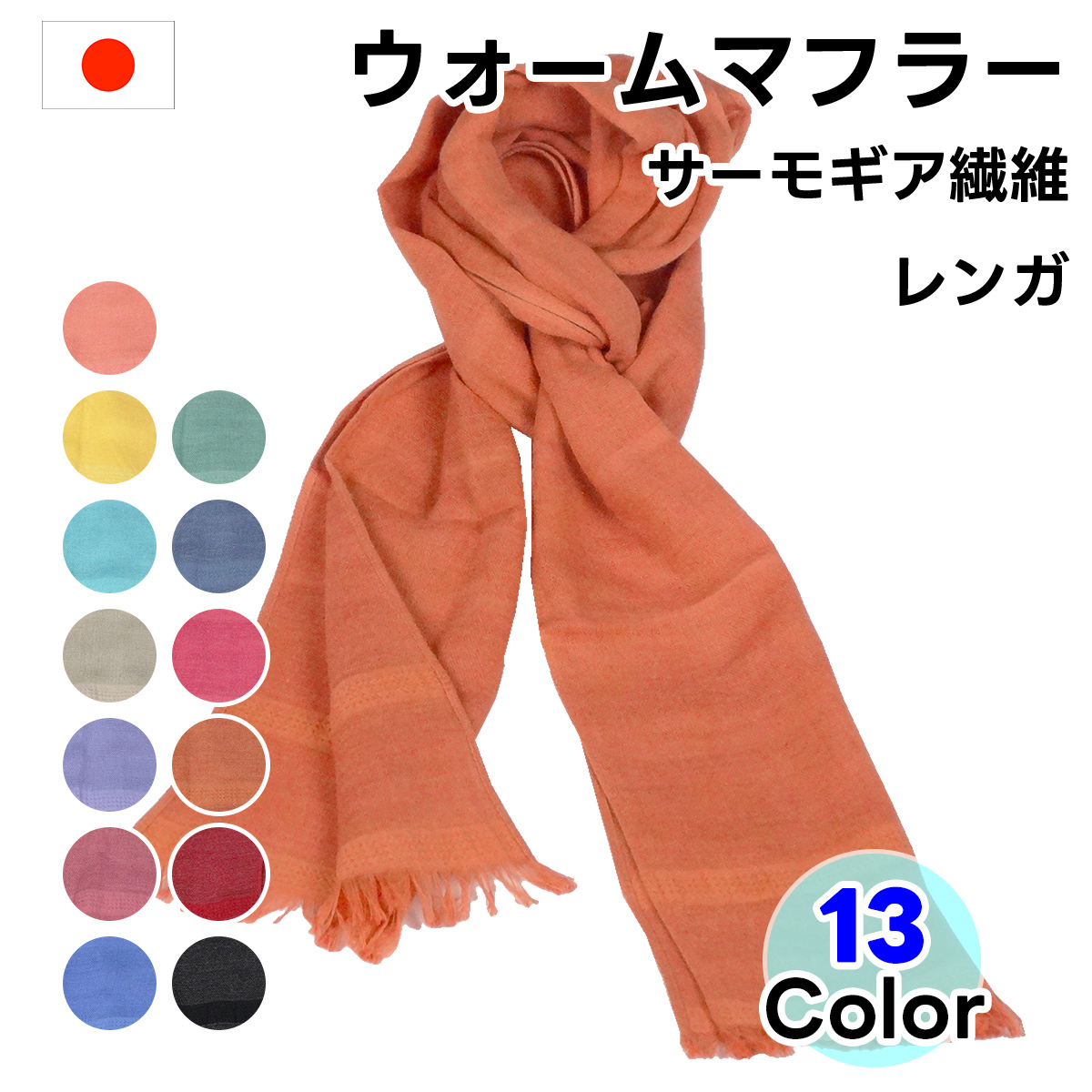 マフラー ウォームマフラー レンガ 日本製 無地 ストール 薄手 発熱素材 サーモギア チクチクしない 收藏